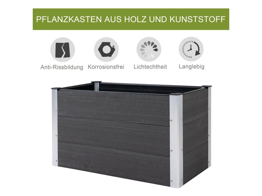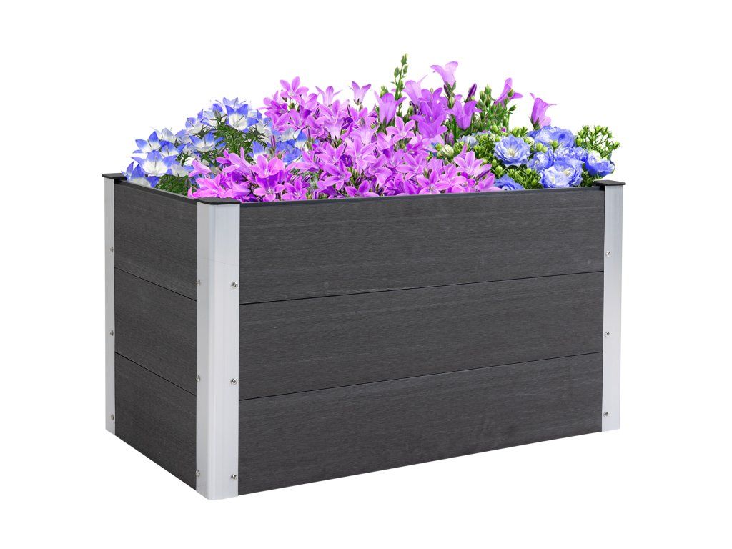 ODOLNÉ: Květináč vyrobený z odolného dřevoplastového kompozitu (WPC) a hliníku je extrémně robustní a má dlouhou životnost. I po delším používání zůstává nerezavějící a nebledne.