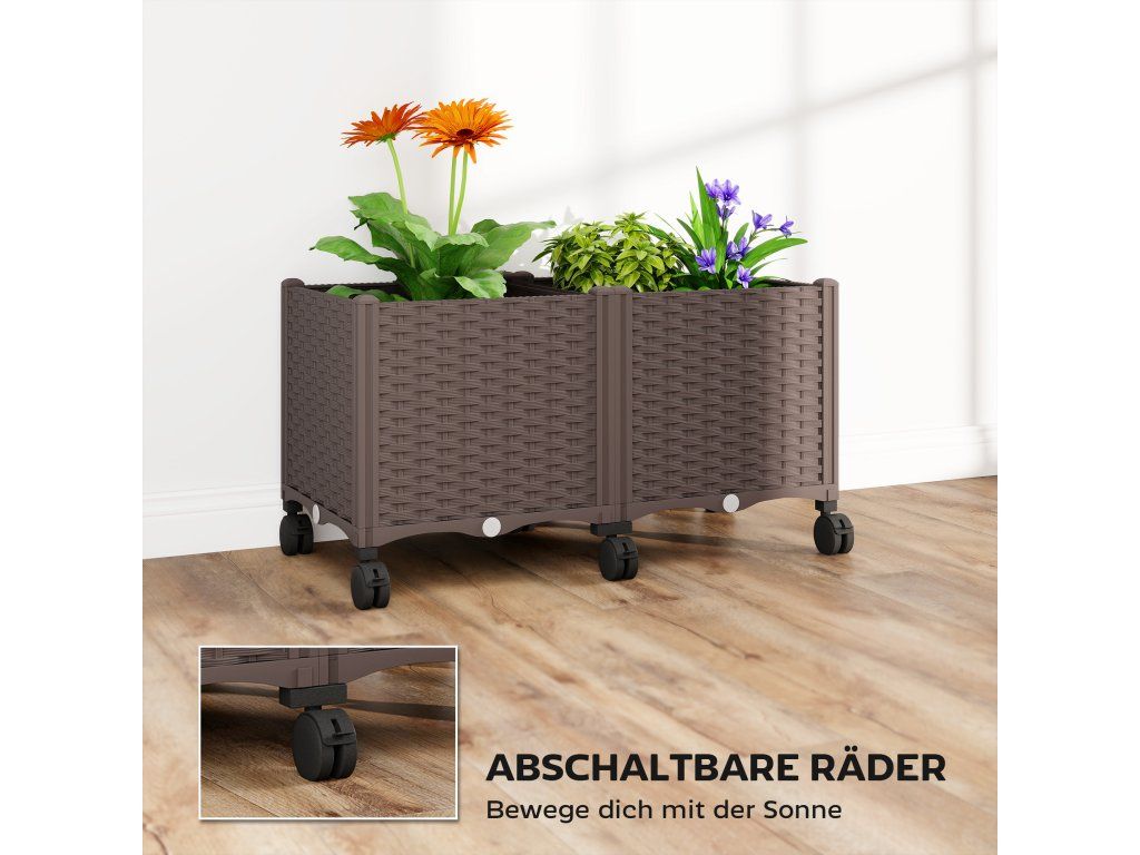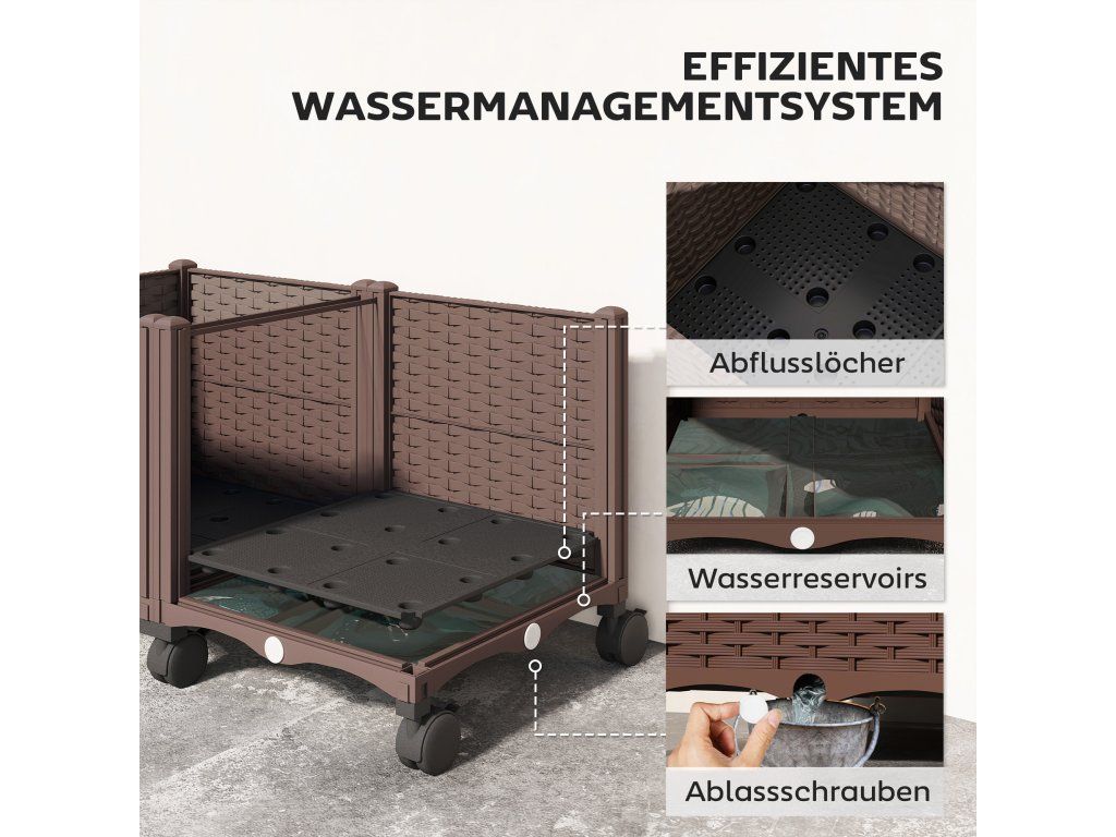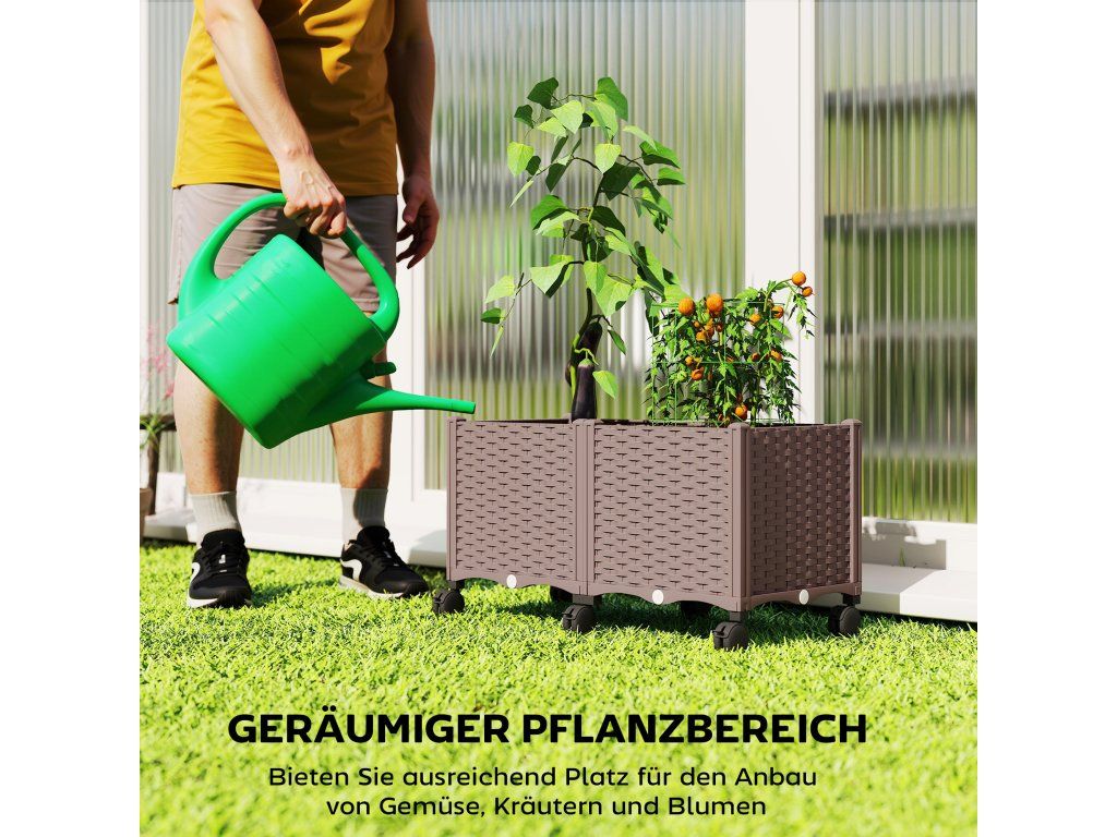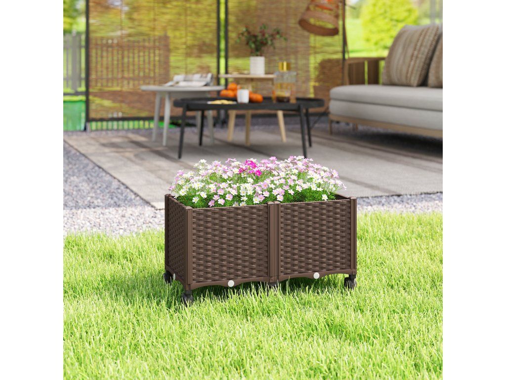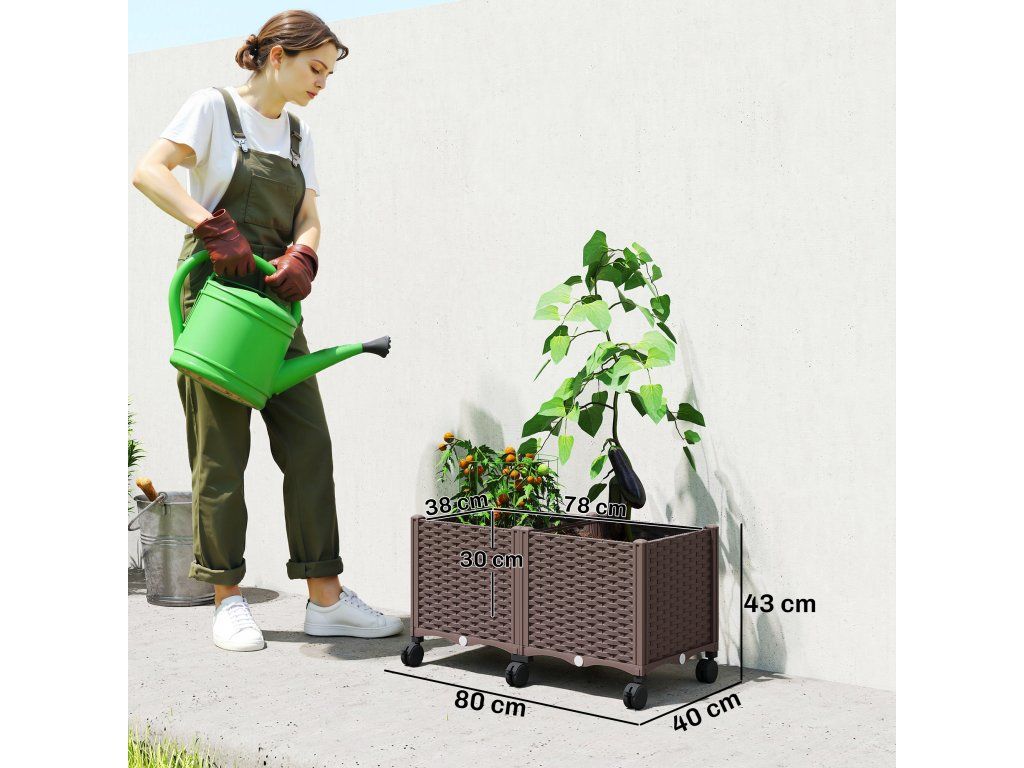 Vyvýšený záhon nabízí dostatek prostoru pro květiny, zeleninu a bylinky. Samozavlažovací systém s drenážními otvory udržuje rostliny hydratované s minimální námahou. Šest hladce se otáčejících koleček, z nichž čtyři mají brzdy, umožňuje snadné přemisťování na slunných místech. Odolný plastový materiál a montáž bez použití nářadí činí tento vyvýšený plastový záhon ideálním pro celoroční venkovní použití.