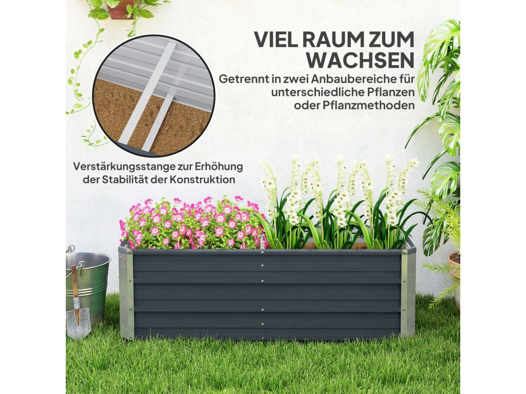 Velký květináč: Tento vyvýšený záhon nabízí dostatek prostoru pro pěstování rostlin. Můžete pěstovat různé své oblíbené rostliny, zeleninu, bylinky a květiny.