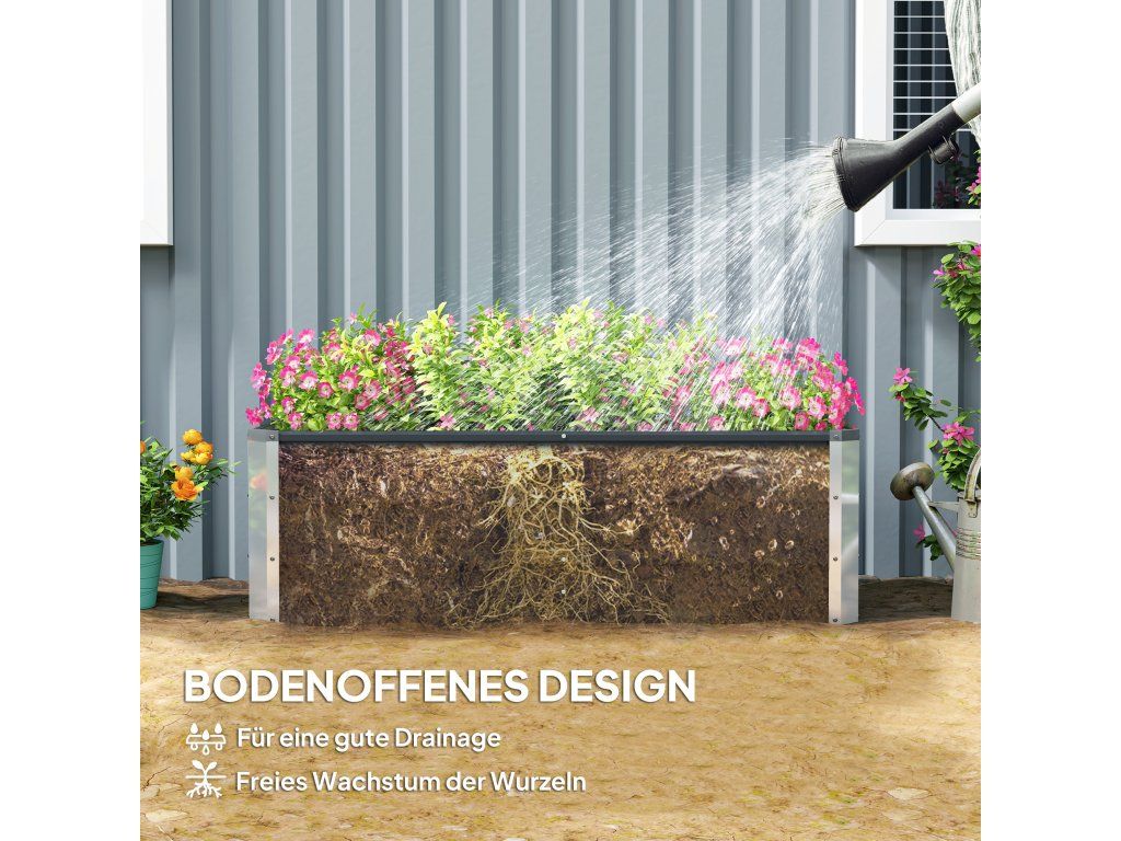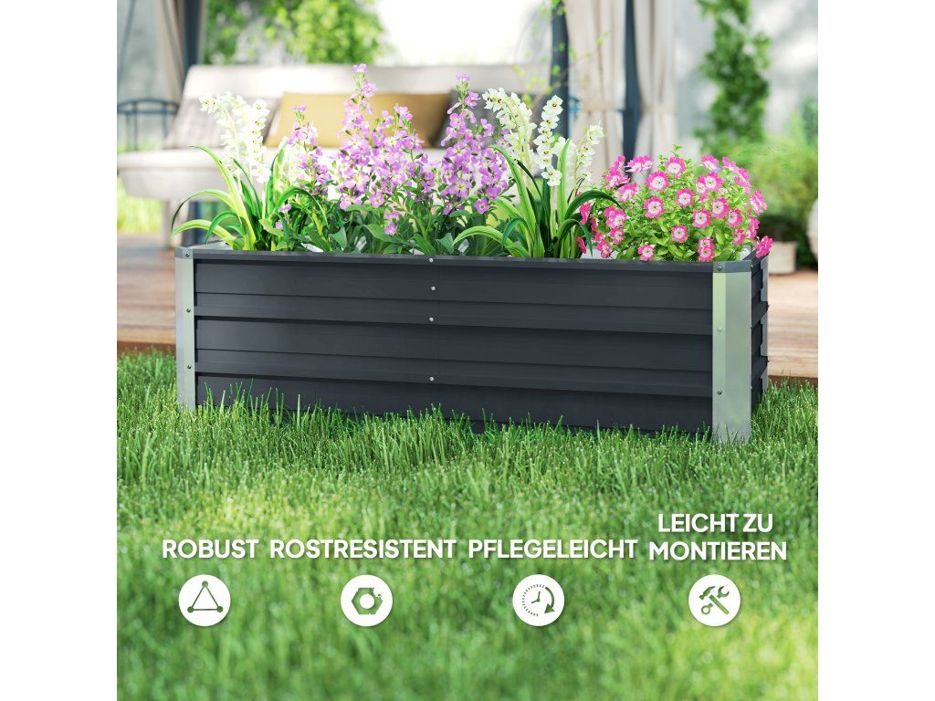 Odolný vůči povětrnostním vlivům: Odolný ocelový materiál tohoto záhonu se nedeformuje jako dřevo a má voděodolný povlak pro venkovní použití.