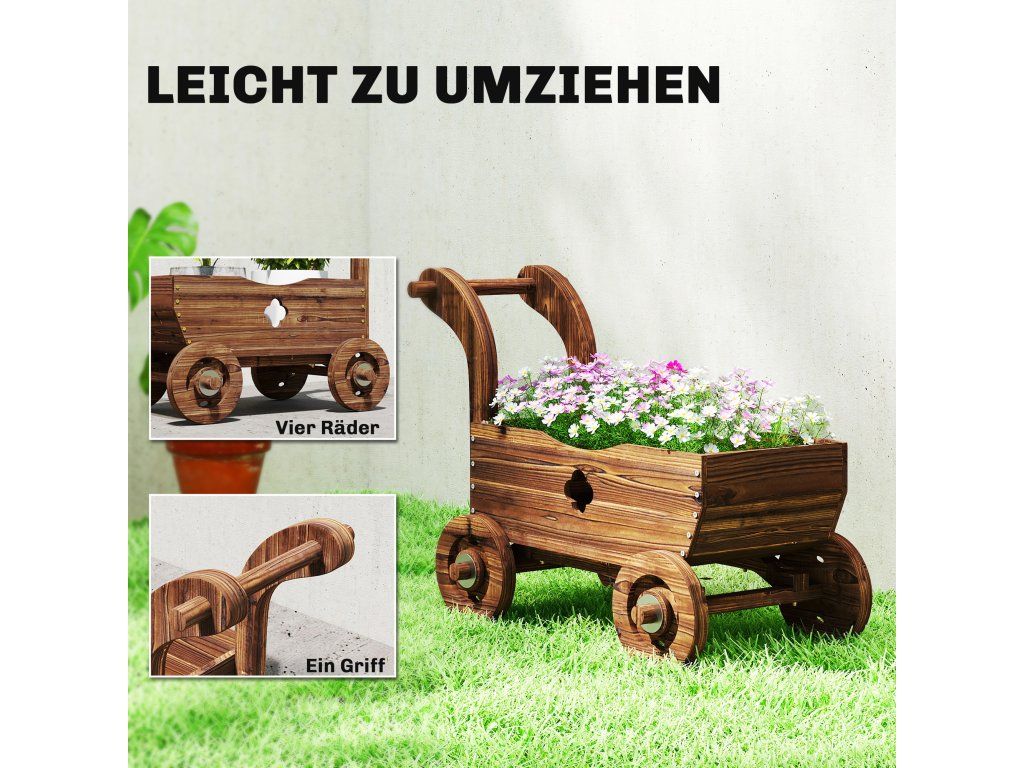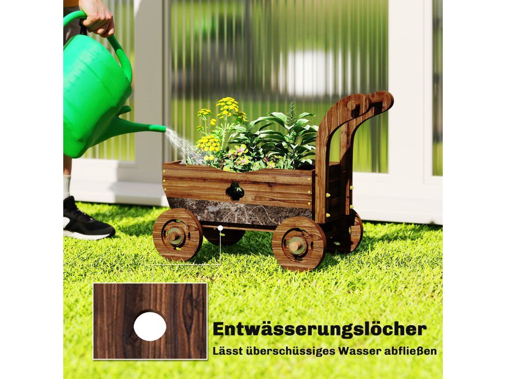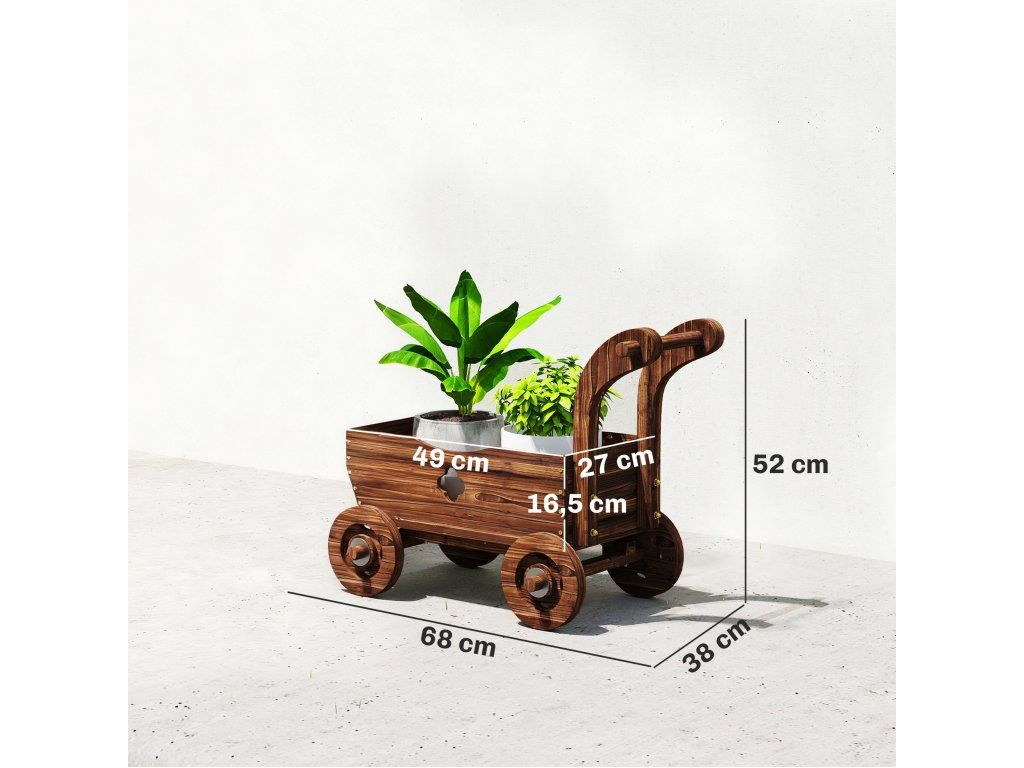 Okouzlující vintage design vozíku: Rustikální design trakaře s karbonizovanou povrchovou úpravou dělá z tohoto vyvýšeného záhonu stylový ústřední bod vaší verandy, terasy nebo zahrady a dodá vašemu venkovnímu dekoru útulný venkovský nádech a nostalgickou eleganci.