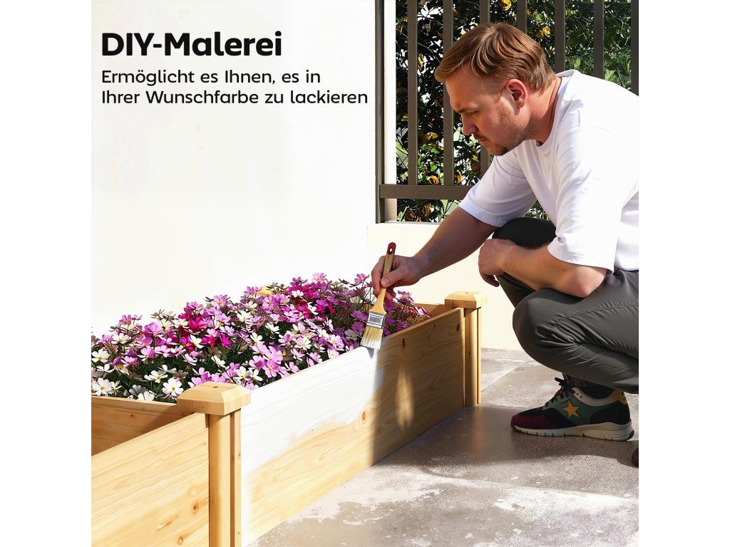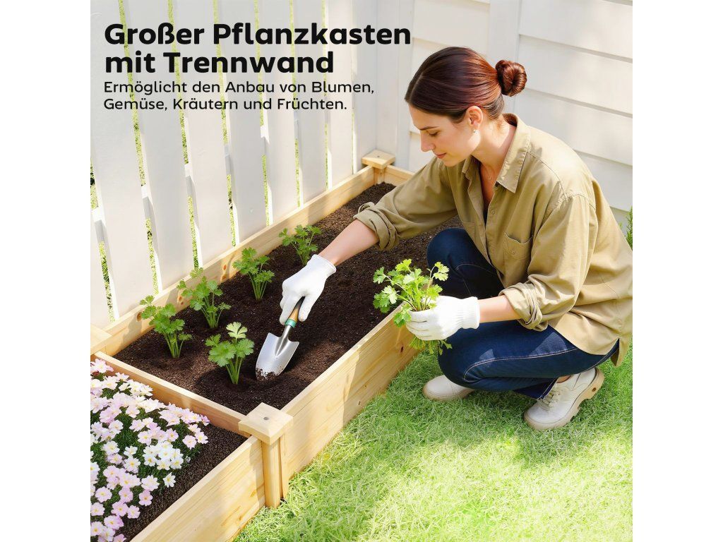 Snadná montáž: Díky drážkované konstrukci nohou můžete dřevěný vyvýšený záhon sestavit rychle a bez složitého nářadí. To vám ušetří čas a úsilí a umožní vám připravit si zahradu během chvilky.