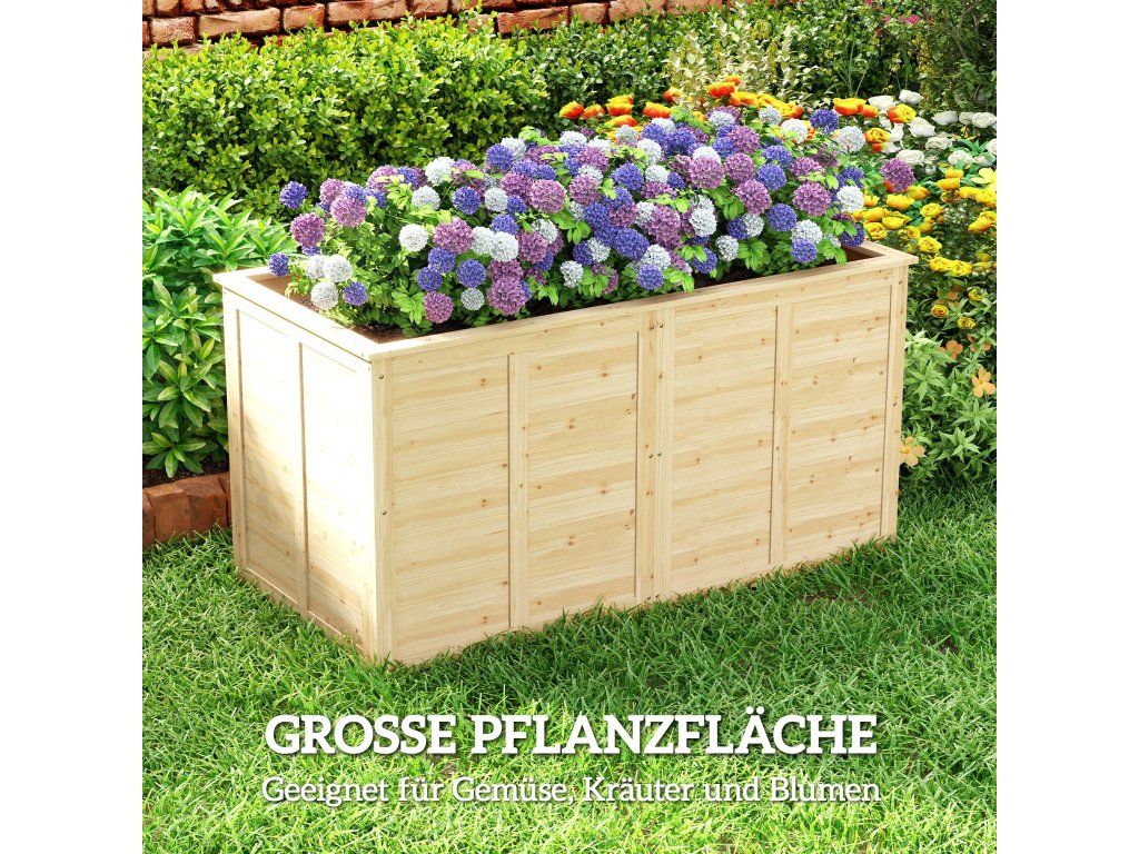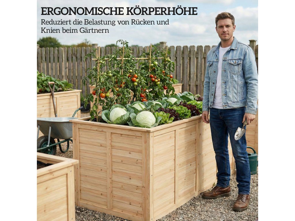 Oživte svůj venkovní prostor s vyvýšeným záhonem. Otevřené dno umožňuje hluboký růst kořenů a efektivní odvodnění, což podporuje zdravější a silnější rostliny. Tento dřevěný záhon z masivního jedlového dřeva, vyztužený kolíky, zůstává stabilní po celý rok. Jeho teplý a přírodní vzhled vytváří stylové a bezpečné místo pro pěstování zeleniny, bylinek i květin..