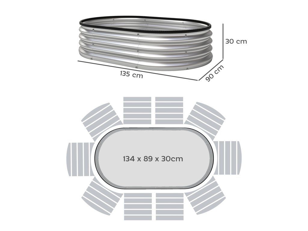 Kovový vyvýšený záhon 135 x 90 c 30 cm | stříbrný