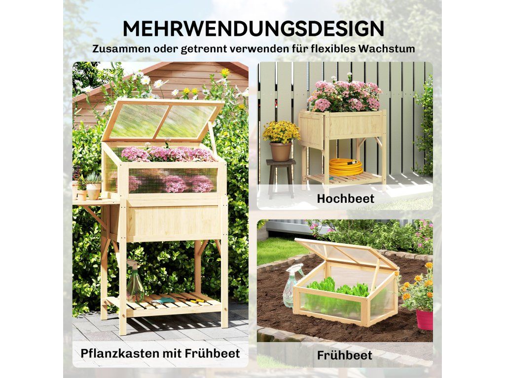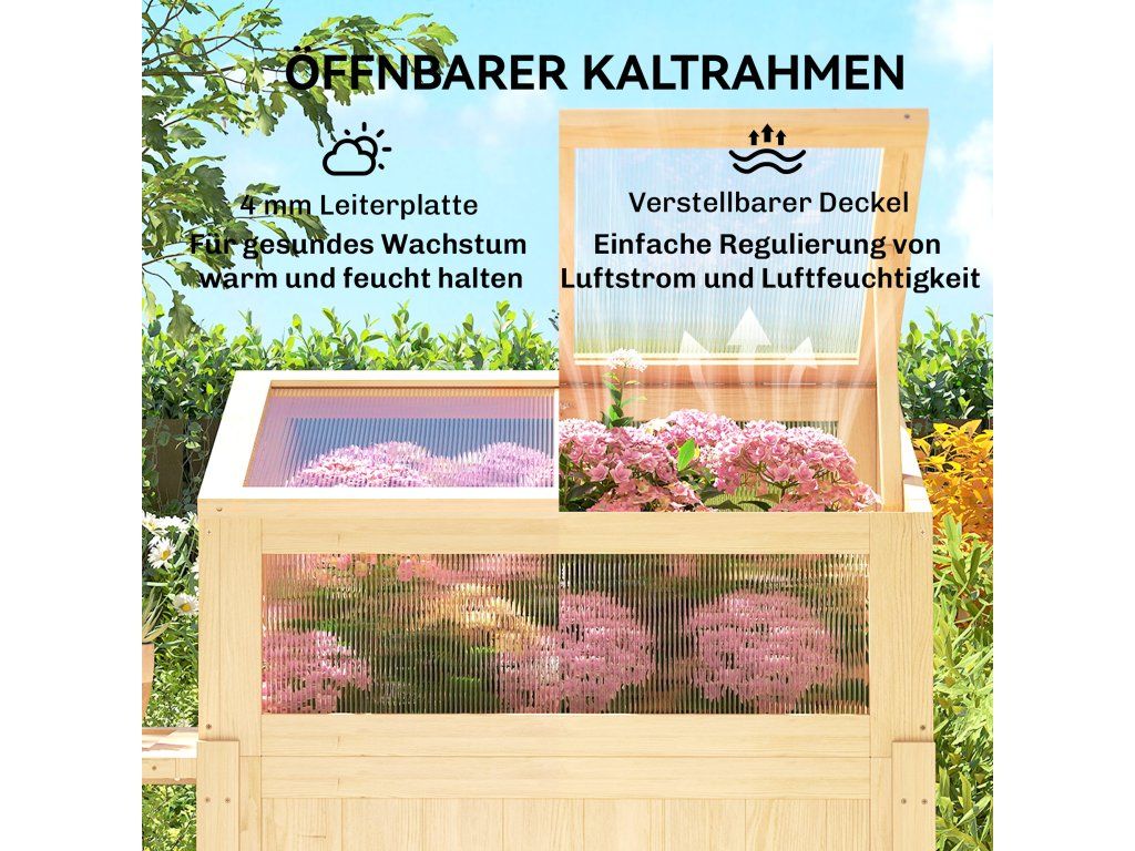 Kombinace 2 v 1: Praktický vyvýšený záhon s integrovaným skleníkem, všestranné využití. Průhledné 4mm polykarbonátové panely zadržují teplo, propouštějí světlo a chrání rostliny před chladem v zimě.