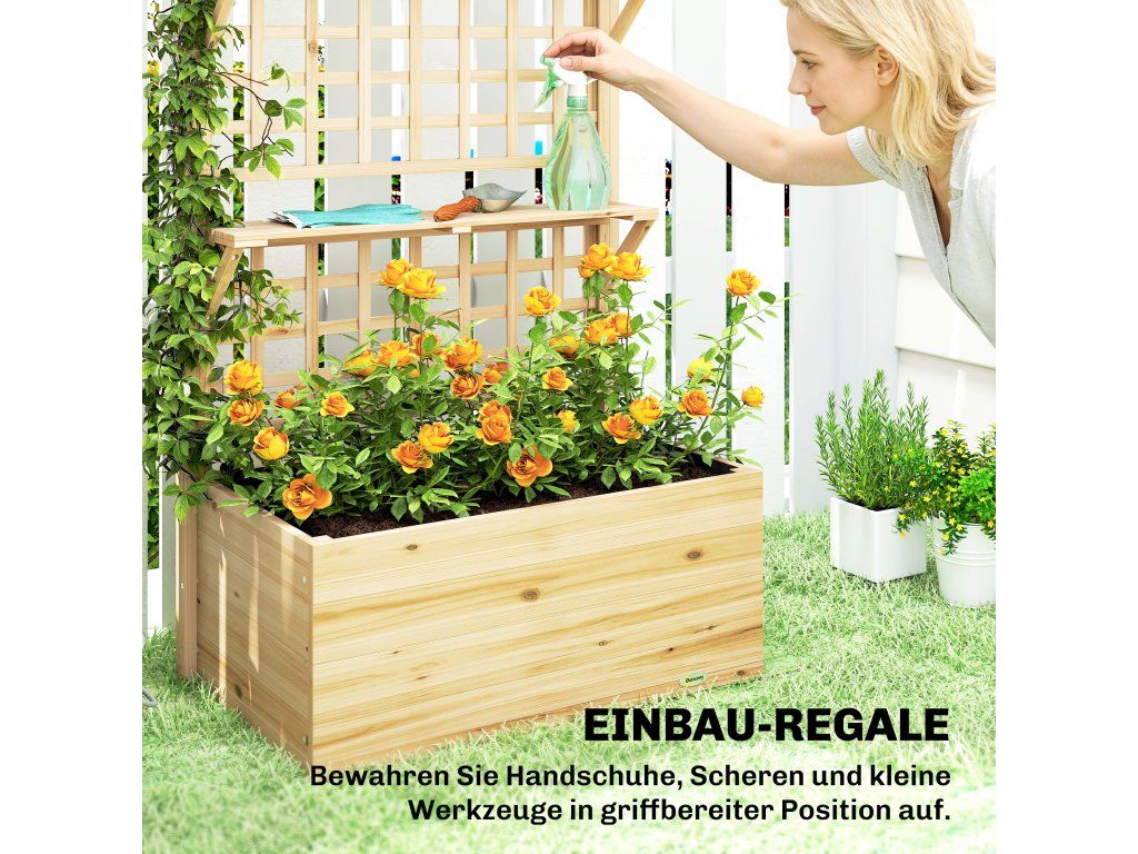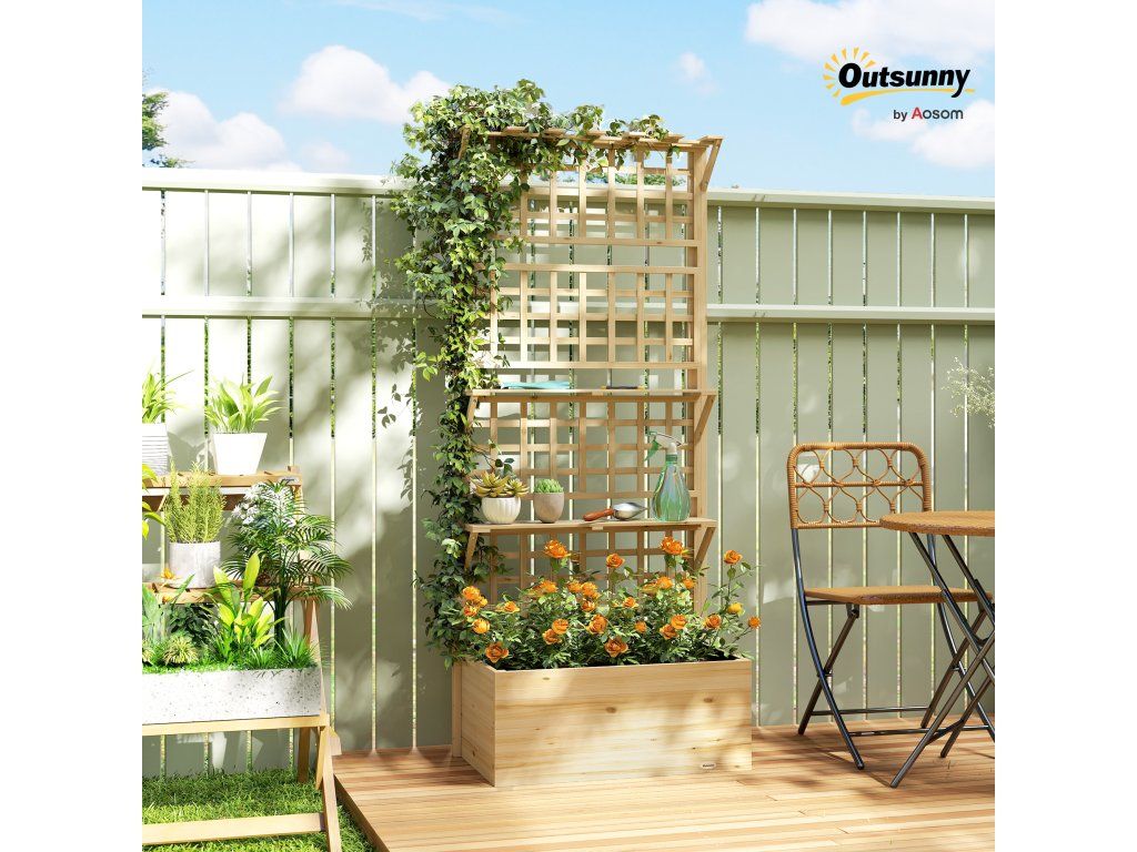 ✔ Tento vyvýšený záhon kombinuje květináč, treláž a police.