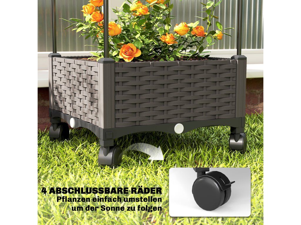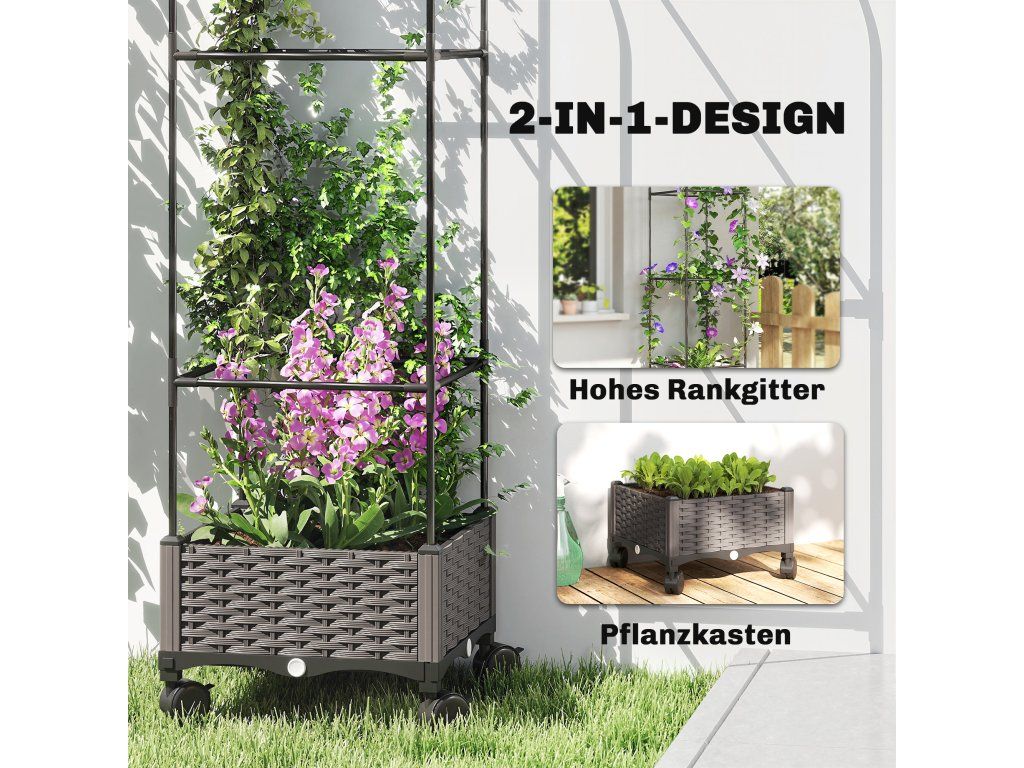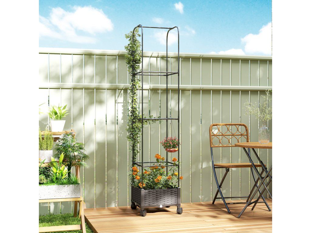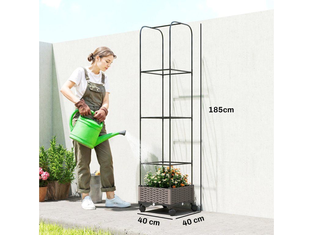 Vertikální lezecká plocha: Tento květináč s 185 cm vysokou treláží je ideální pro popínavé rostliny, jako jsou rajčata a růže, Promění váš balkon nebo terasu v zelenou oázu s přírodní atmosférou.