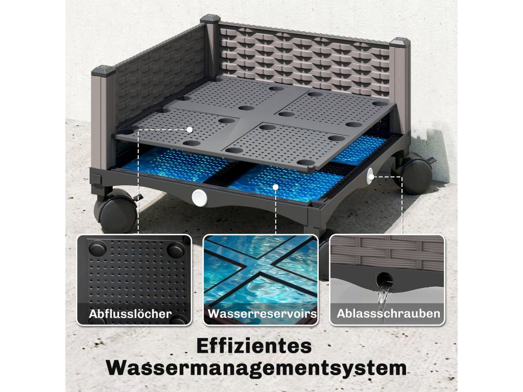 Snadná mobilita: Čtyři uzamykatelná kolečka vám umožní snadno přesouvat květináč, abyste rostliny dostali na sluneční světlo, uspořádali prostor nebo si usnadnili čištění.