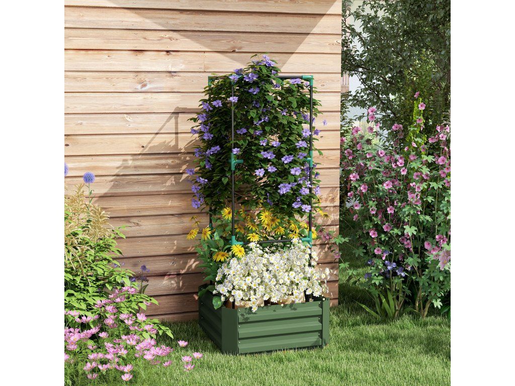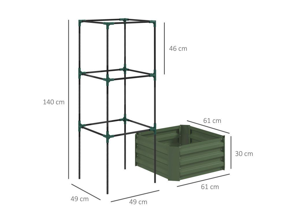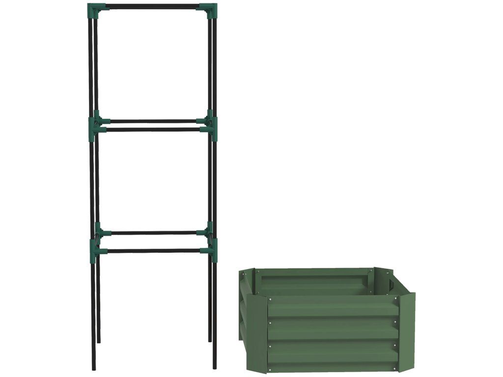 Vyvýšený záhon s treláží 61 x 61 x 140 cm | zelený