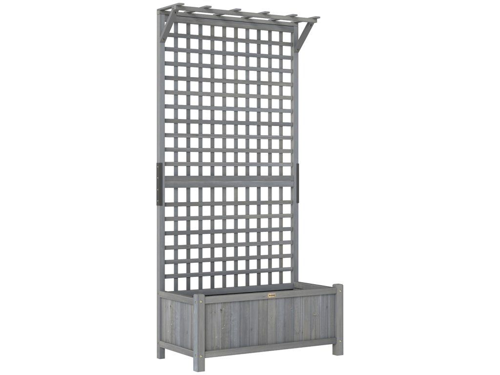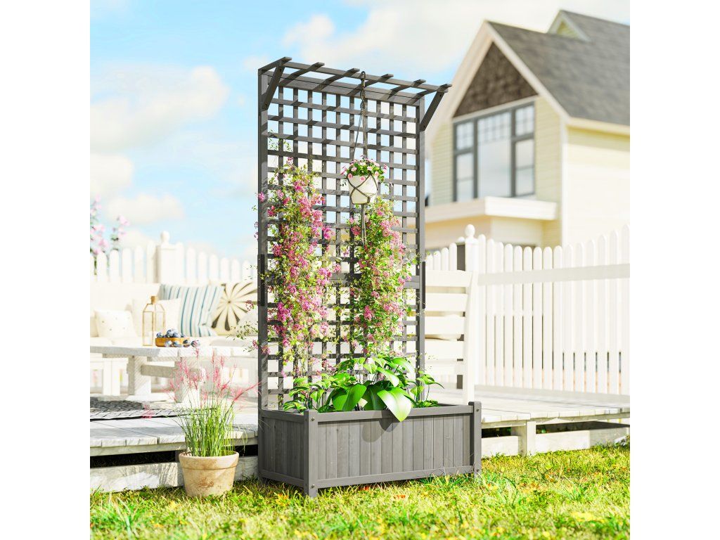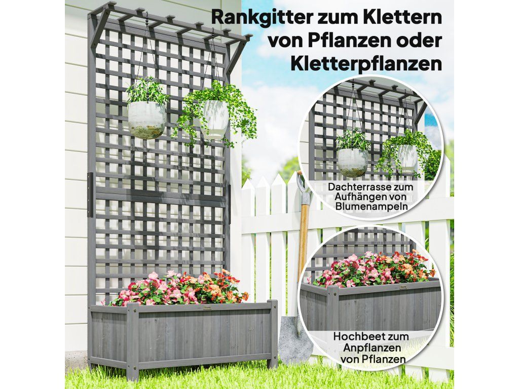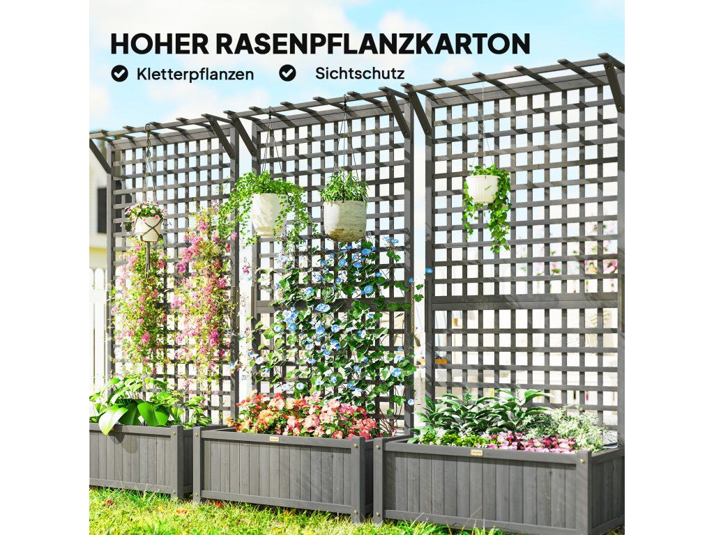 Dvoudílná konstrukce: Kombinace vyvýšeného záhonu a treláže v jednom stylovém květináči – ideální pro popínavé rostliny a kreativní zahradní nápady