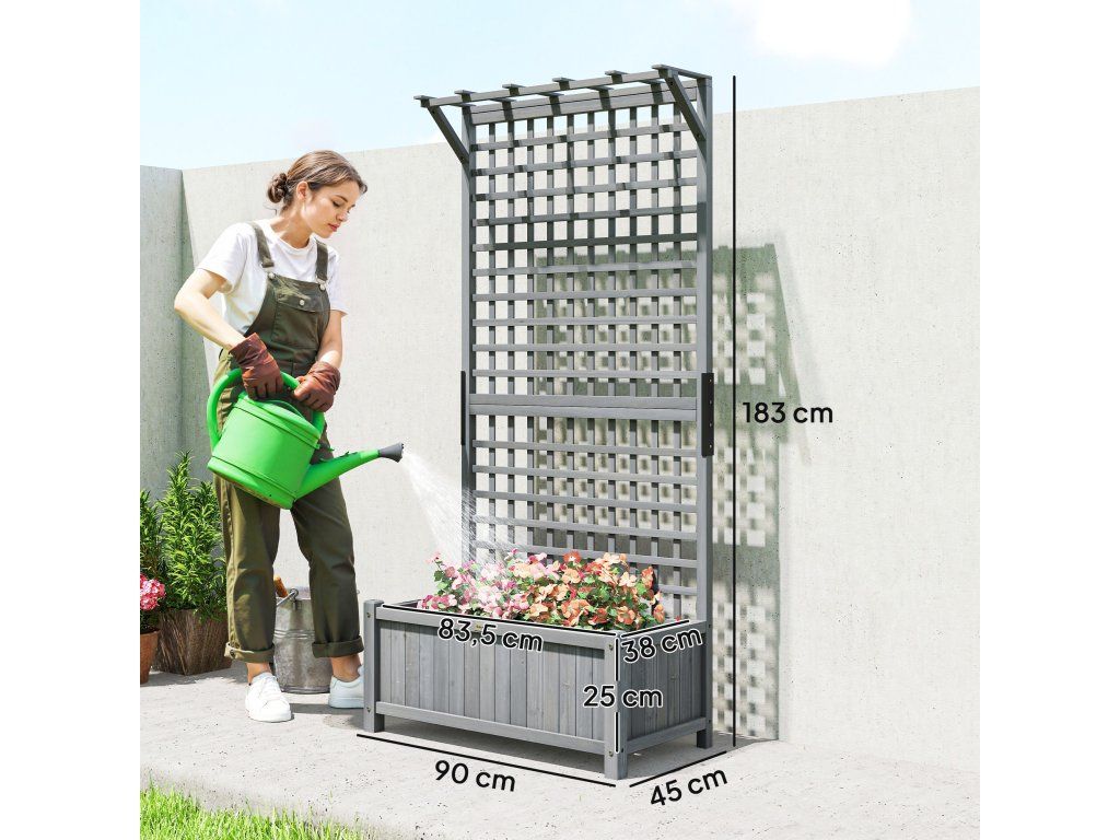 Objevte vyvýšený záhon s treláží a stříškou – ideální řešení pro vaši zahradu. Tento praktický zahradní prvek je vyroben z robustního smrkového dřeva a ošetřen vodoodpudivým nátěrem, který zajišťuje dlouhou životnost i vyšší odolnost vůči povětrnostním vlivům. Květináč je vybaven drenážními otvory, které odvádějí přebytečnou vodu, zabraňují přemokření substrátu a zároveň chrání dřevo před poškozením. Integrovaná treláž umožňuje efektivně využít vertikální prostor pro popínavé rostliny, zatímco stříška poskytuje částečnou ochranu před deštěm a přímým sluncem.