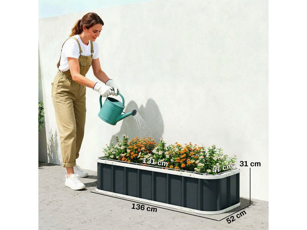 Celkové rozměry zahradního vyvýšeného záhonu: 136 x 52 x 31 cm. Vnitřní rozměry květináče: 131 x 47 x 31 cm.