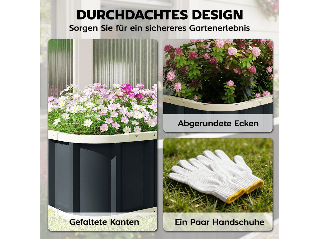✔ Práškově lakovaný povrch bylinkového záhonu nabízí zlepšenou ochranu proti korozi pro venkovní použití.