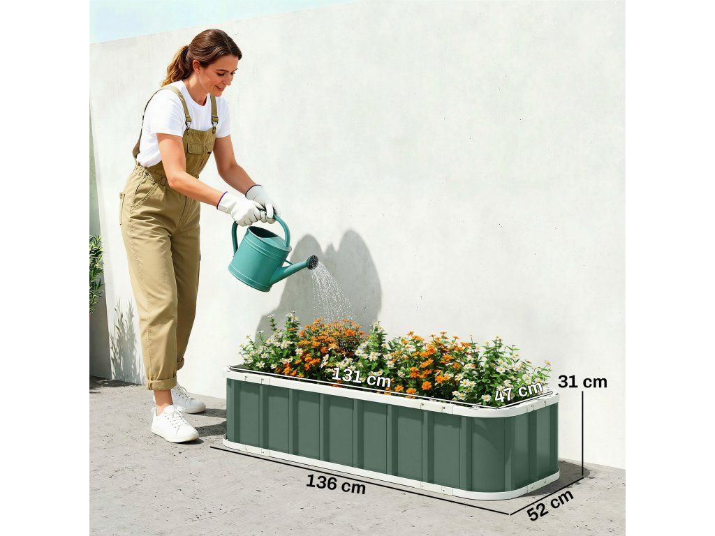 Celkové rozměry zahradního vyvýšeného záhonu: 136 x 52 x 31 cm. Vnitřní rozměry květináče: 131 x 47 x 31 cm.