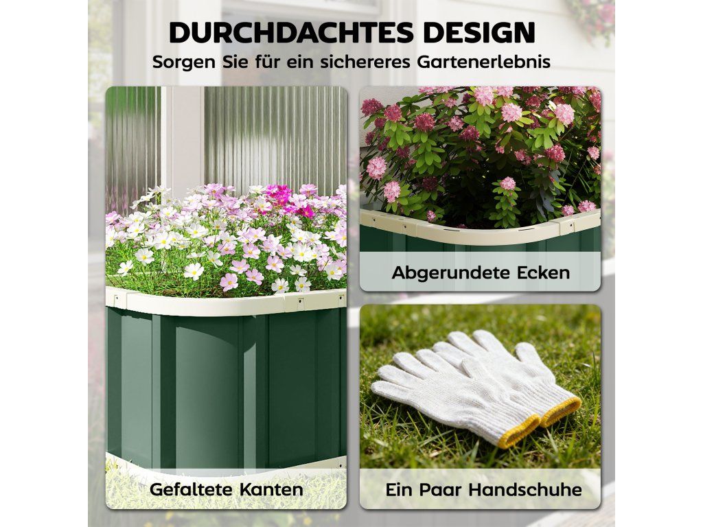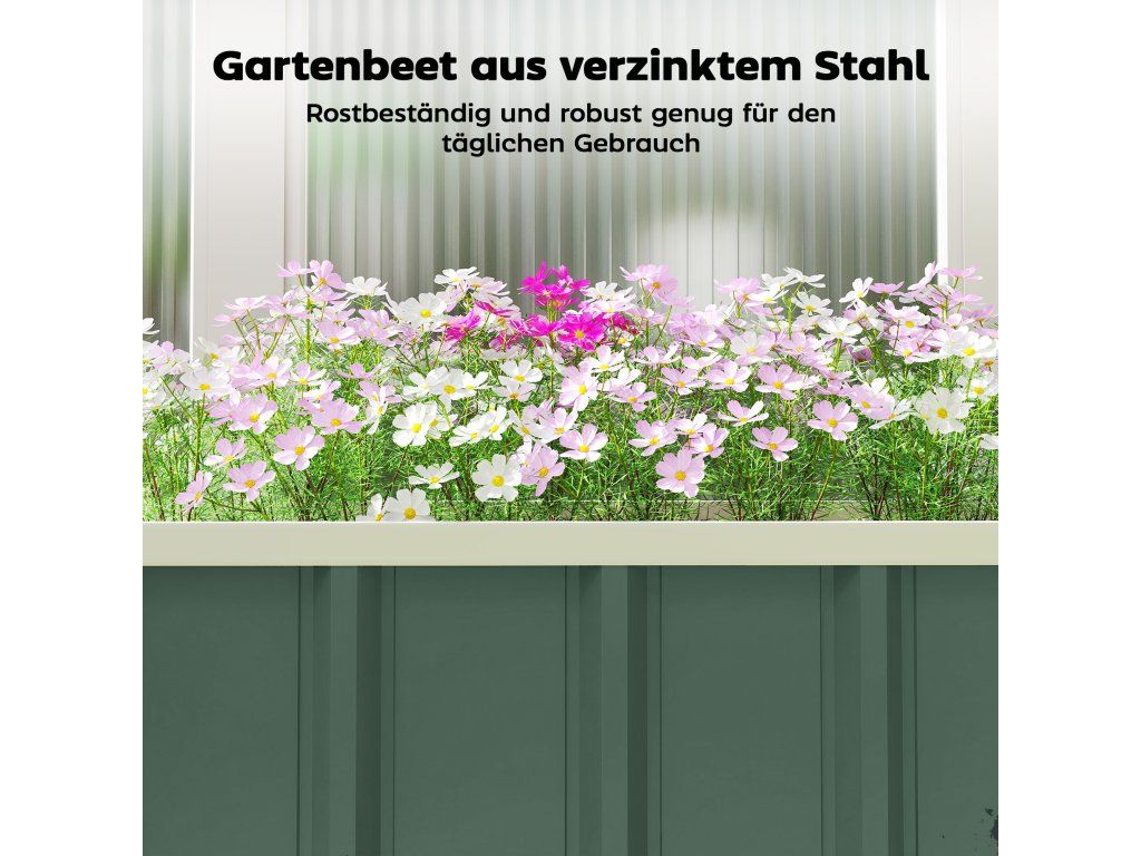 Pozinkovaný ocelový rám: Vyrobeno z pozinkované oceli s práškovým nástřikem, tato kovová vyvýšená postel je zvláště odolná proti korozi a deformacím. Snadno odolává slunci, dešti i sněhu a zajišťuje dlouhou životnost.