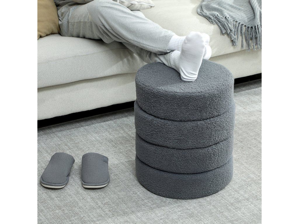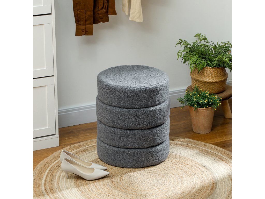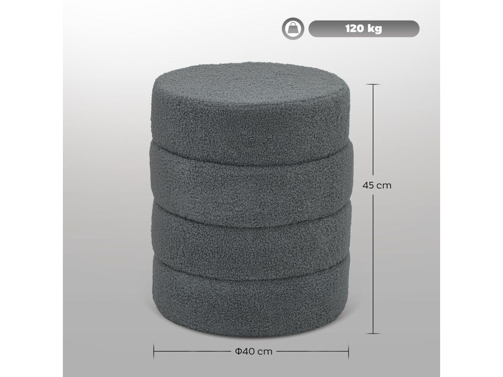 Stylová a všestranná: Tato kulatá stolička má jednoduchý, kulatý tvar s čistými liniemi, díky čemuž je skvělým doplňkem jakéhokoli interiéru, ať už ji používáte jako sedák nebo podnožku.