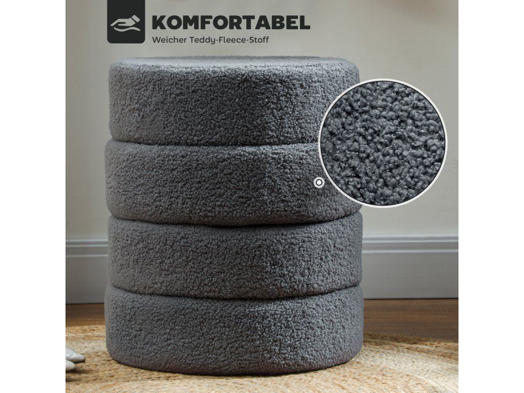 Pohodlná kulatá stolička z plyšového fleece Ø40 x 45 cm | tmavě šedá