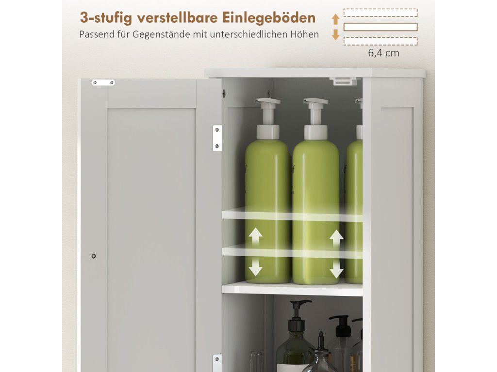 Nastavitelné police, flexibilní úložný prostor: Každá z horních a dolních skříněk vysoké skříňky má třípatrovou nastavitelnou polici, ideální pro složené ručníky, velké lahve s čisticími prostředky nebo další role toaletního papíru.