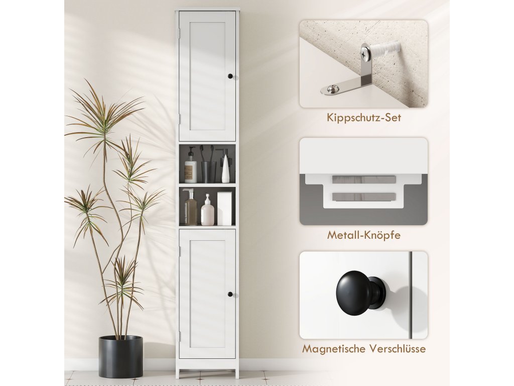 Pevná, stabilní a bezpečná: Tato úzká koupelnová skříňka je vyrobena z vysoce kvalitní MDF a nabízí trvalou stabilitu a bezpečnost. Sada proti převrácení poskytuje větší stabilitu a bezpečnost ve vašem domě.