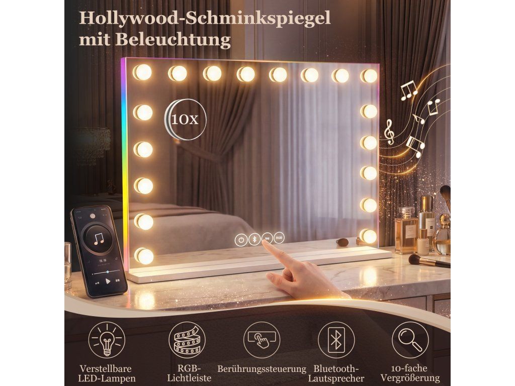 Bezchybná hollywoodská záře: 18 LED žárovek hollywoodského zrcátka nabízí teplé, přirozené nebo studené bílé světlo. Nastavitelný jas zajišťuje perfektní osvětlení pro nanášení make-upu jako hvězda.