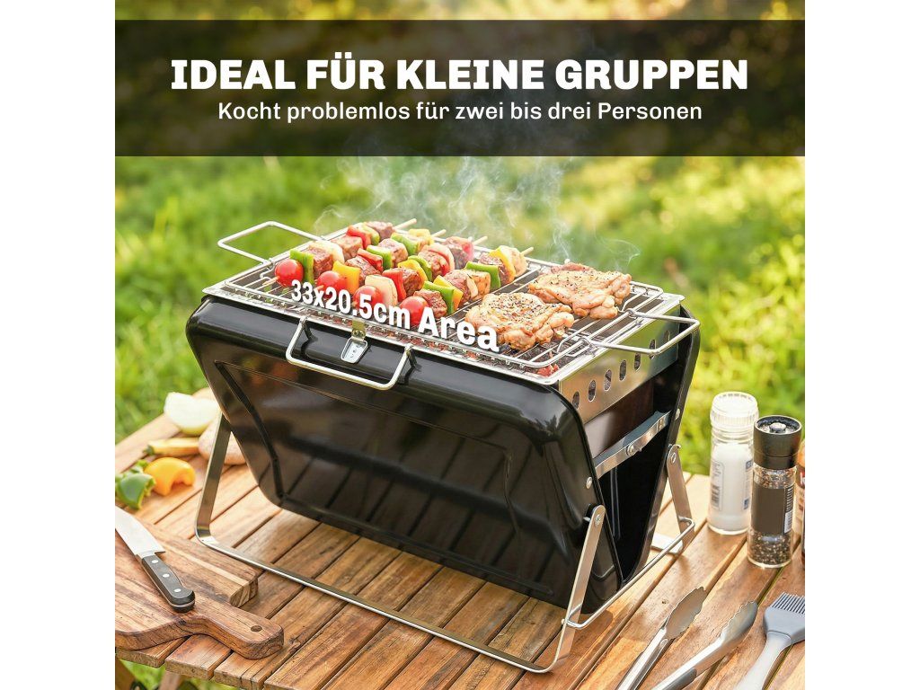 ✔ Tento gril na dřevěné uhlí nabízí grilovací plochu 33x20,5 cm, ideální pro malá setkání.