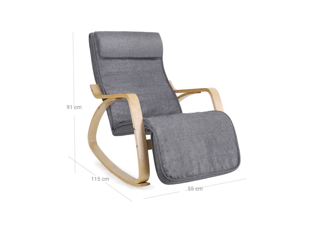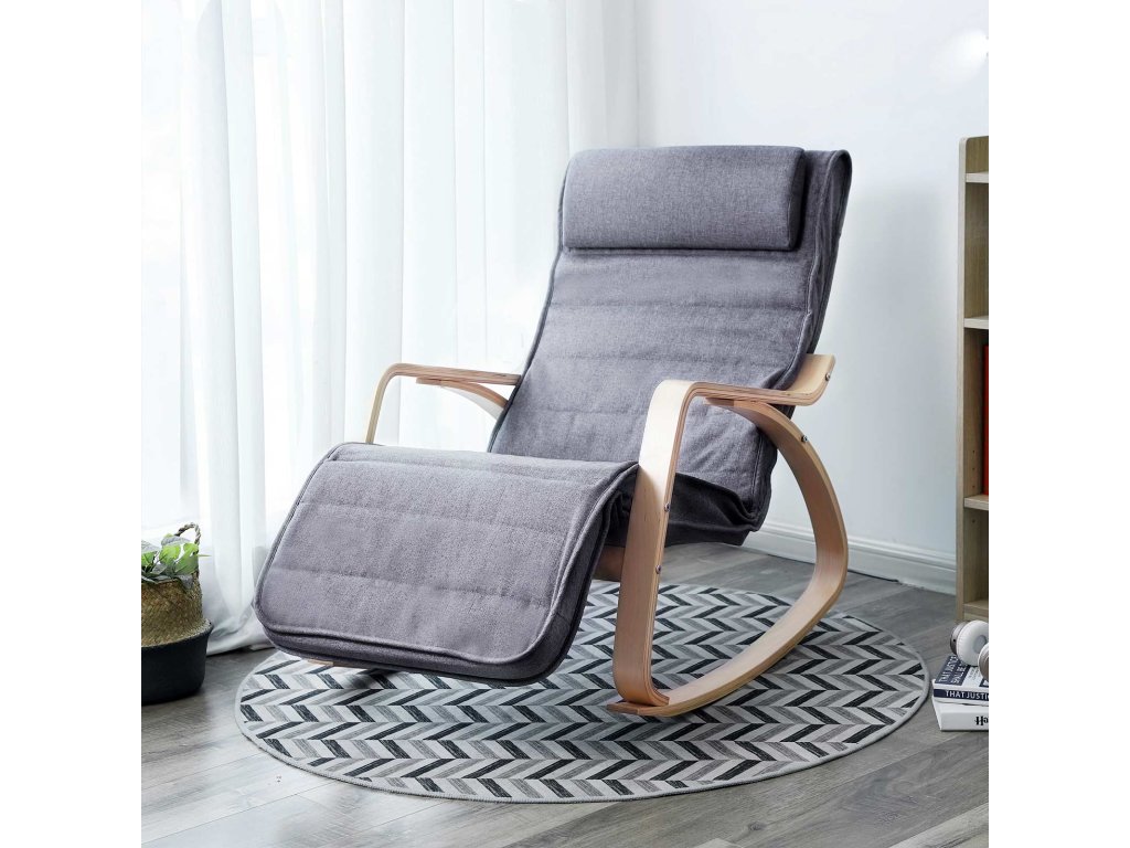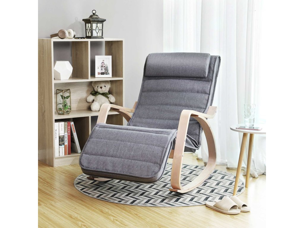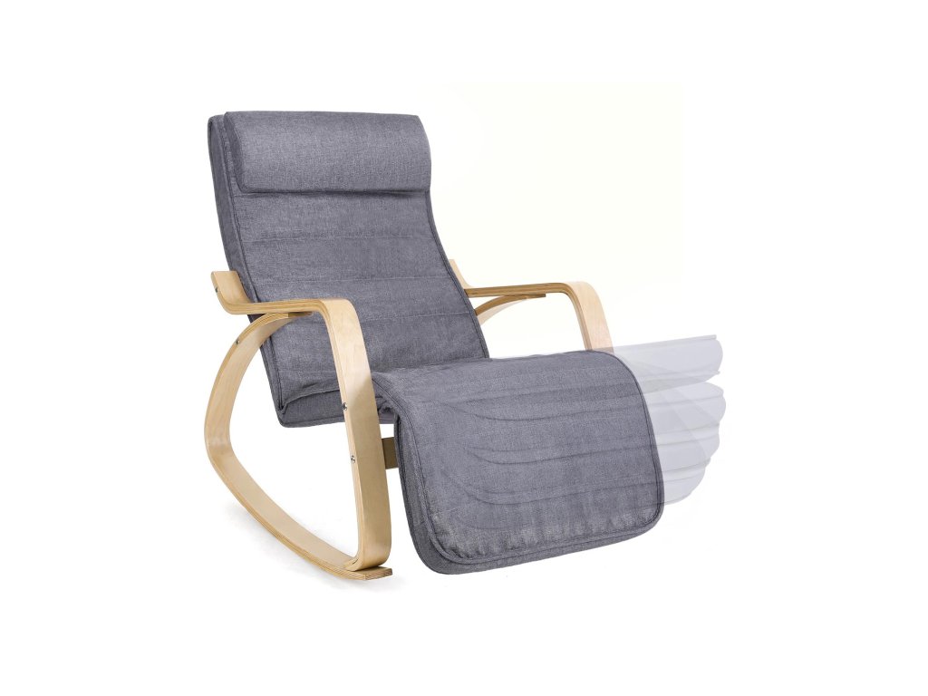 Dobrá nosnost - houpací křeslo je vyrobeno z robustního kvalitního dřeva a potahu z umělého lnu. Masivní rám je vyroben z březového dřeva a natřen přírodní barvou, což zajišťuje nejlepší možnou stabilitu. Materiál: Materiál: březové dřevo, pěna a imitace lnu.5stranně nastavitelná část pro nohy - část pro nohy lze nastavit v 5 sklonech, takže si můžete optimálně přizpůsobit polohu při sezení. Houpací křeslo vám umožní ergonomické a uvolněné sezení.