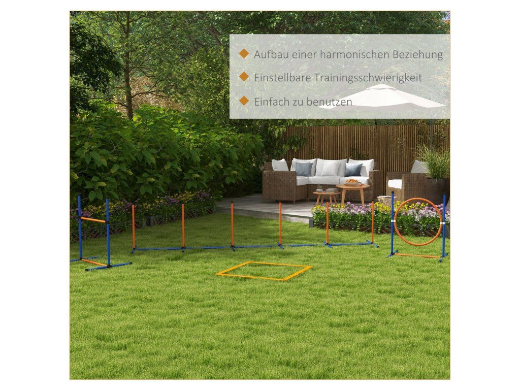 Kompletní Sada pro agility: Naše agility dráha pro psy je 7dílná sada, která obsahuje slalomové tyče, odpočinkový box, dvě nastavitelné překážky, nastavitelnou pneumatiku a dva tunely. To vám umožní poskytnout vašemu psovi komplexní trénink. Všechny základní komponenty jsou součástí jedné sady.