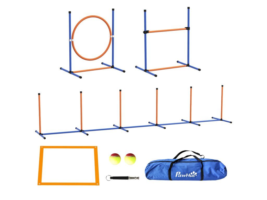 Nastavitelné úrovně obtížnosti: Upravte si výšku odrazového můstku (8–55 cm) a překážek (8–88 cm) tak, aby vyhovovaly schopnostem vašeho psa, a postupně zlepšujte jeho agilitu. Během tréninku používejte přiloženou píšťalku pro zlepšení komunikace a reakcí.