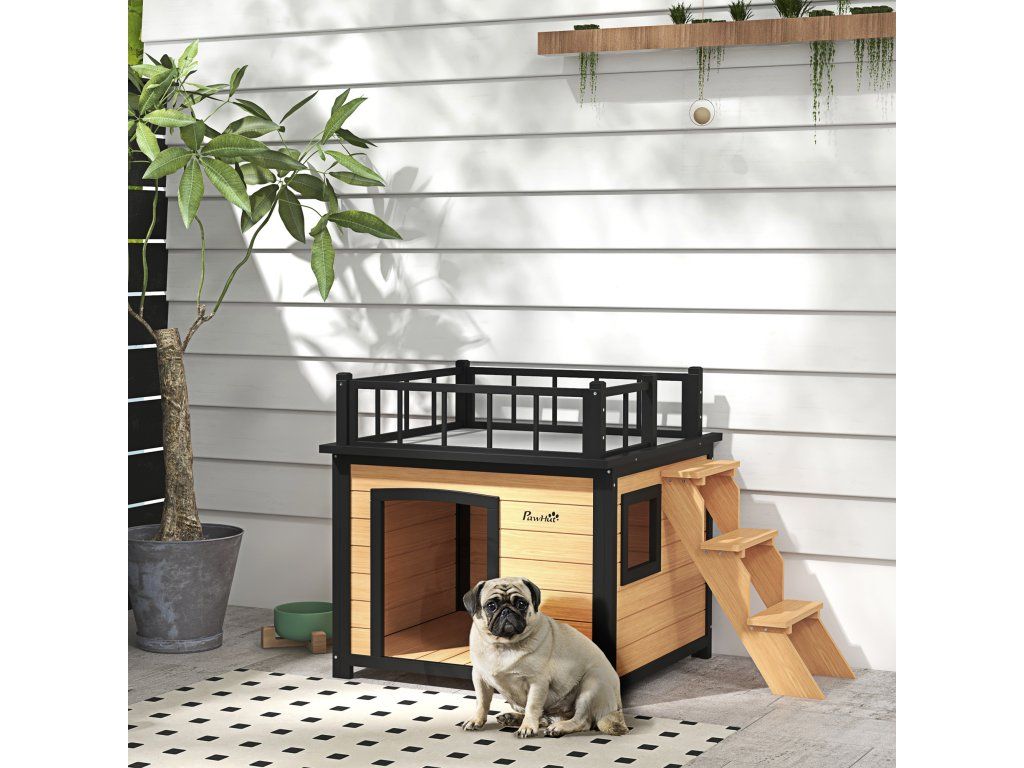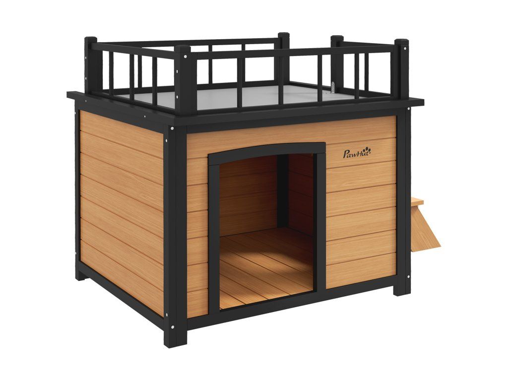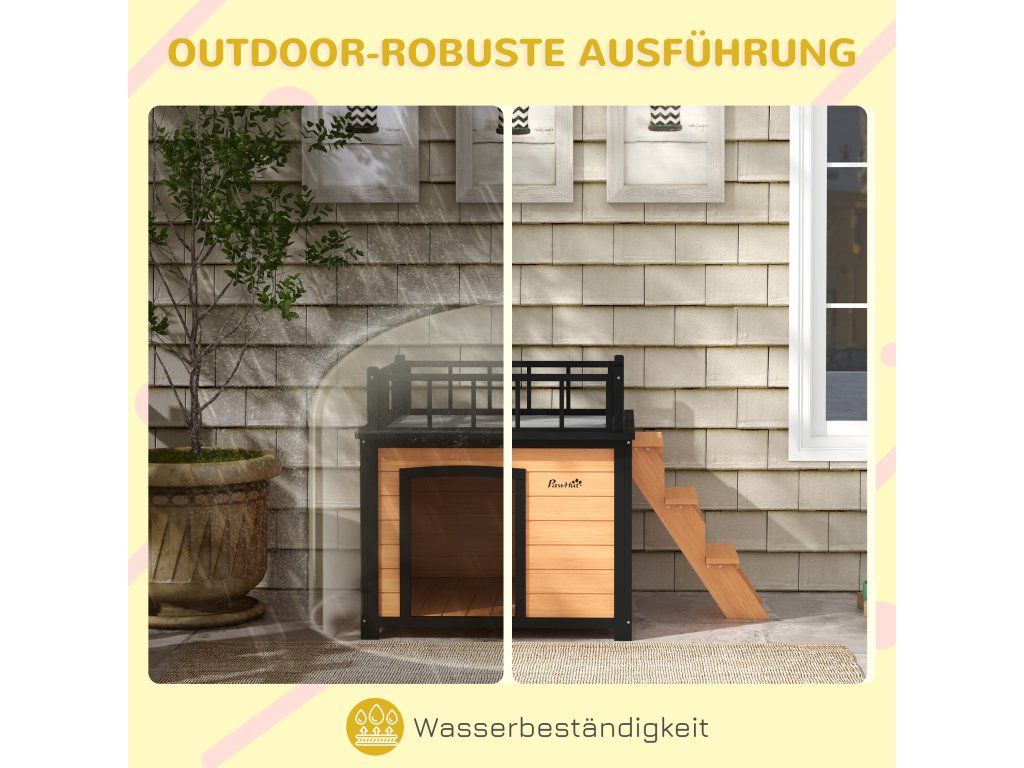 Spolehlivý materiál: Domeček pro malá zvířata je vyroben z masivního jedlového dřeva a je dostatečně velký pro malé a střední psy do hmotnosti 20 kg a délky 65 cm. Domeček je vodoodpudivý, takže váš mazlíček zůstane v suchu i v dešti.