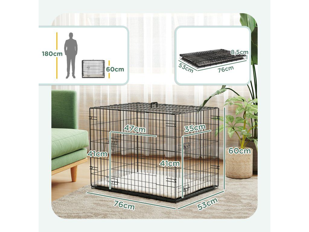 Skládací psí klec 75 x 48,5 x 53 cm | černá