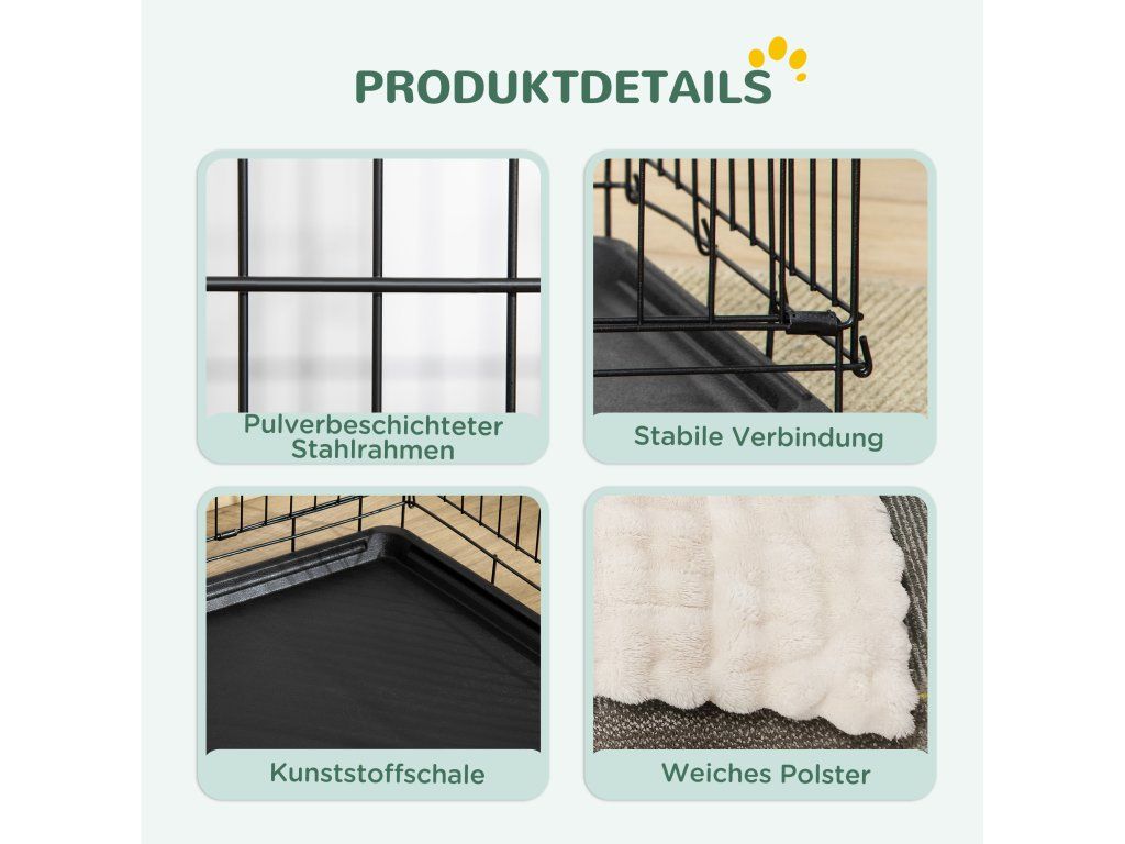 Odnímatelný, pratelný polštář: Vytváří pohodlný prostor uvnitř skládací psí klece, který umožňuje mazlíčkům relaxovat.