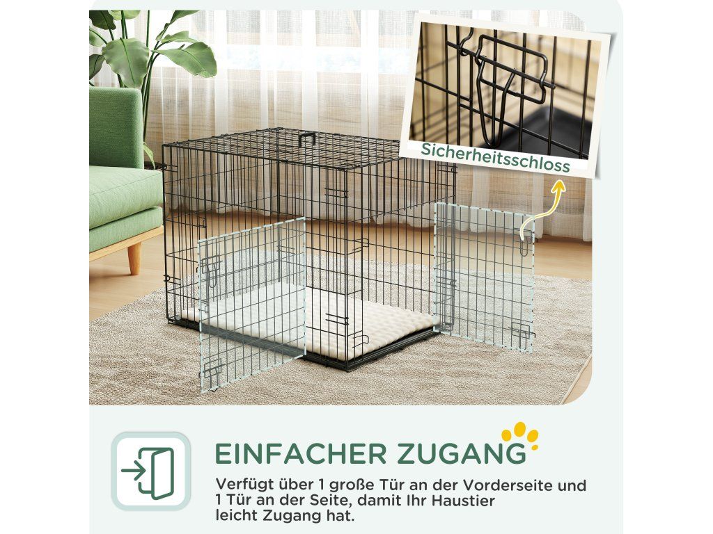 Přední a boční dvířka: Domácí mazlíčci mohou Snadný vstup a výstup z této psí klece. Boční západky zajišťují, že psy v případě potřeby bezpečně zůstanou uvnitř.