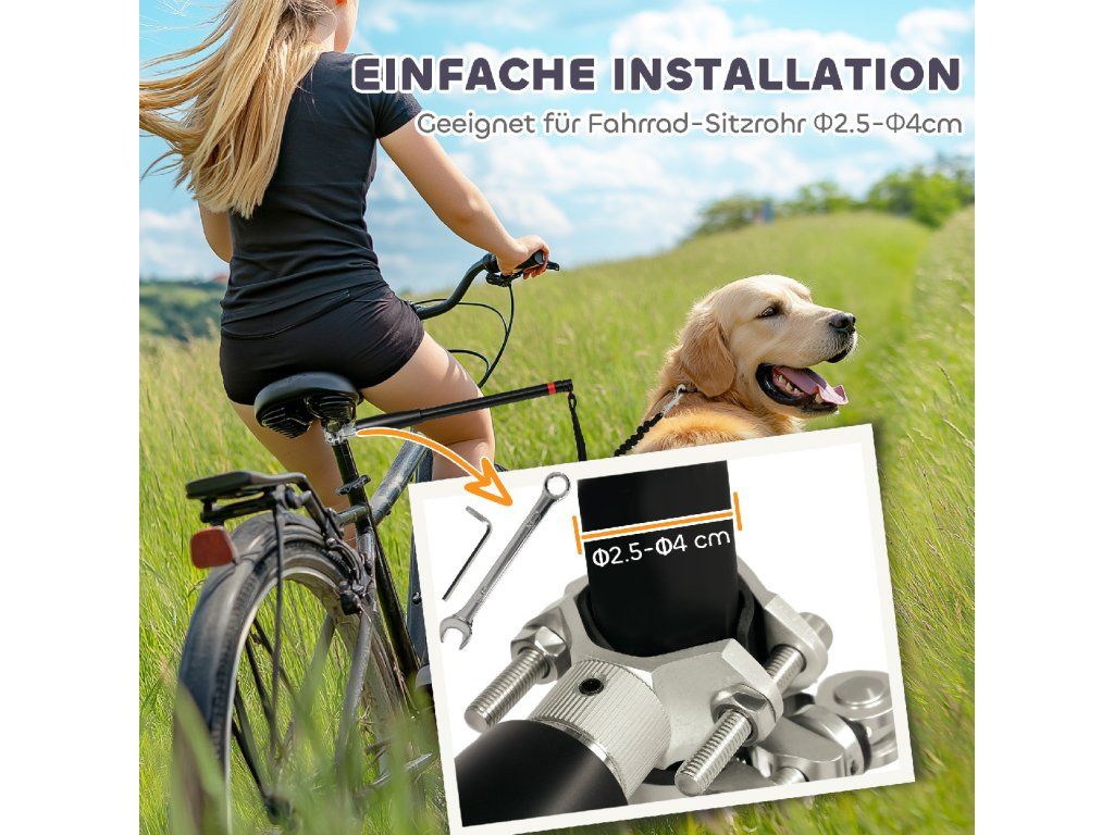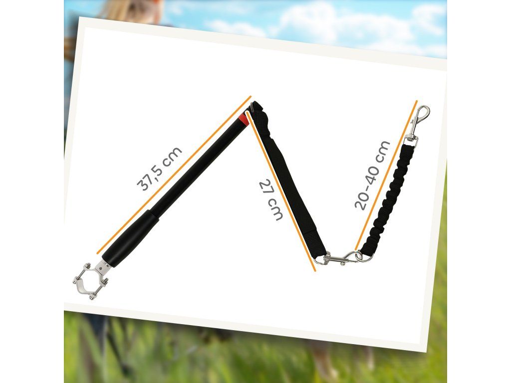 Ochrana proti nárazům: Flexibilní vodítko se natahuje z 20 na 40 cm, čímž se snižuje riziko, že váš pes během jízdy náhle zatáhne a naruší kolo.
