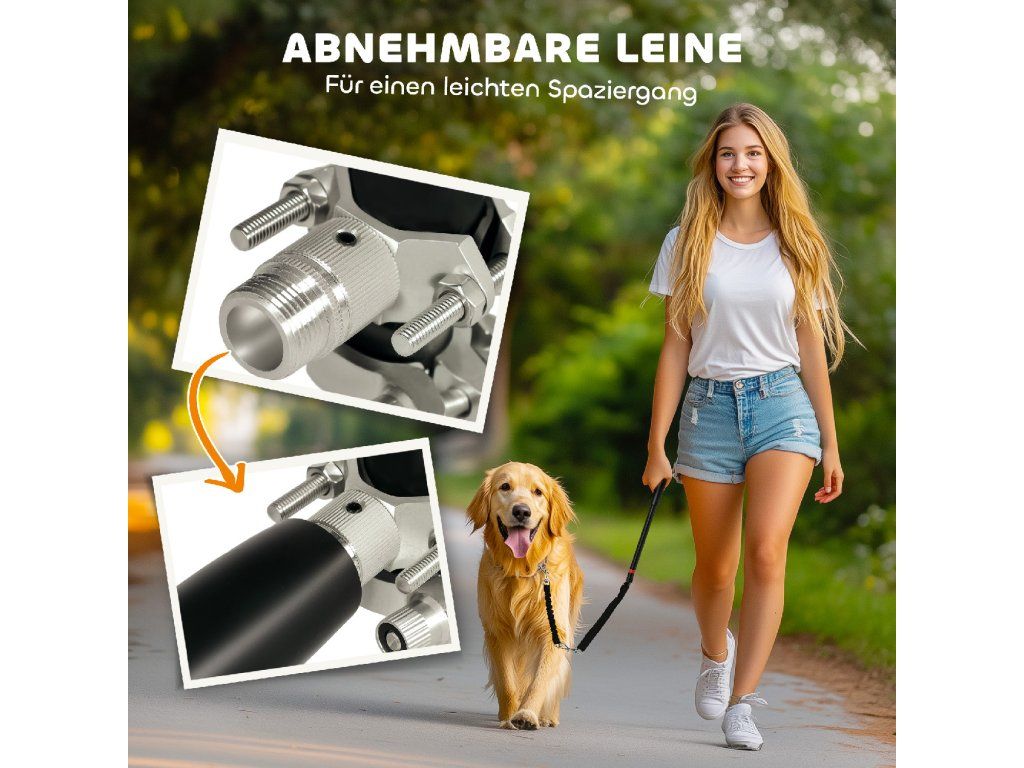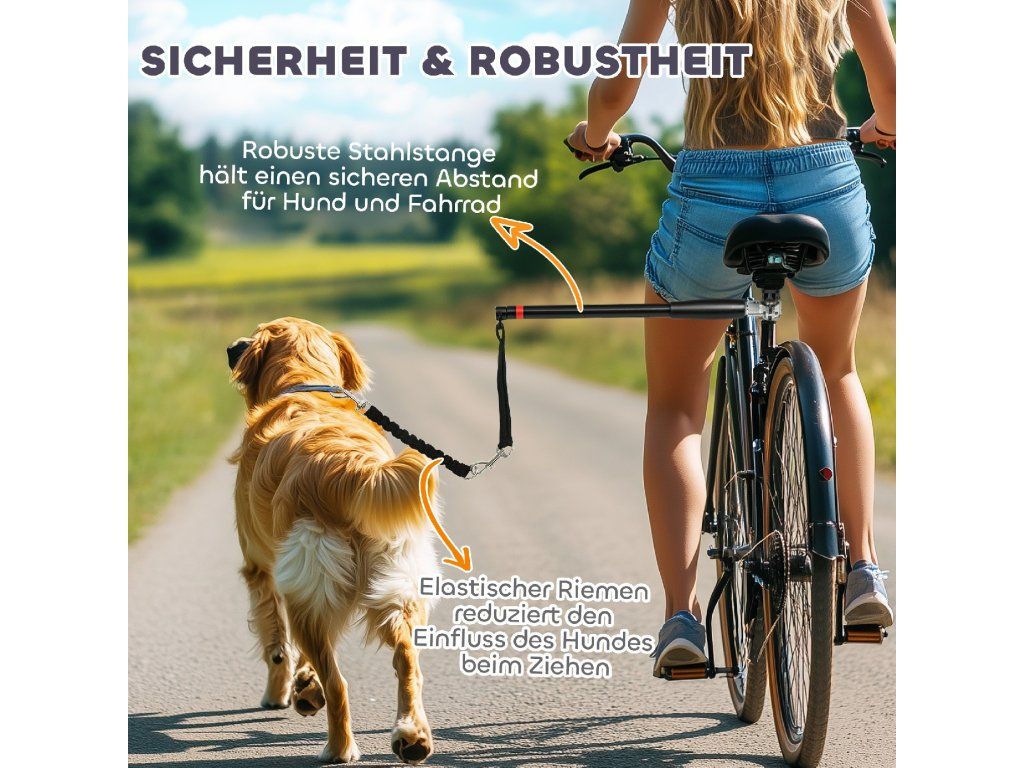 Bezpečná vzdálenost: Díky robustní ocelové tyči zůstává váš pes bezpečně mimo kola kola, což zaručuje plynulou a bezkontaktní jízdu.