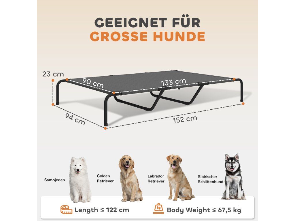 Pro velká plemena: Dopřejte svému velkému čtyřnohému příteli velkorysý prostor s lehací plochou 152 x 94 cm - venkovní pelíšek pro psa, který je ideální pro úplné natažení a pohodlnou relaxaci.
