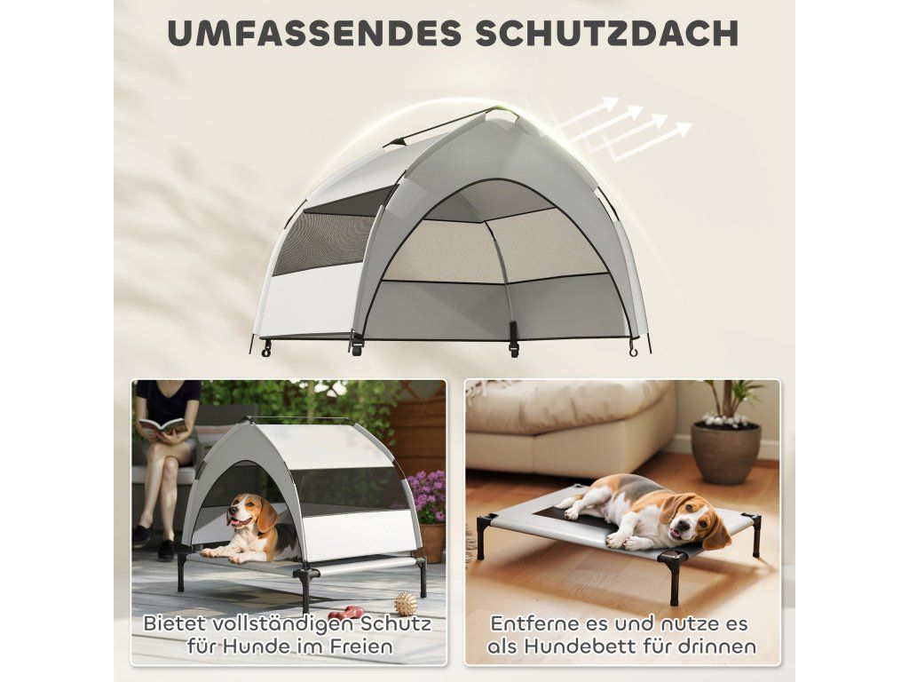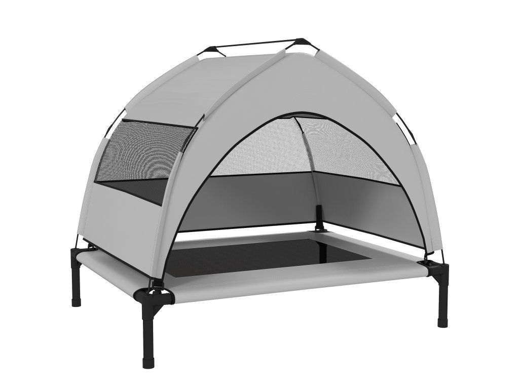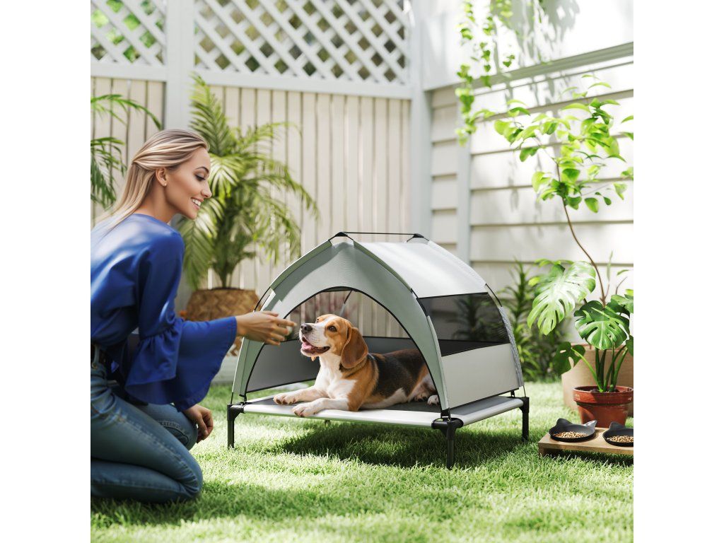 Komplexní ochrana před sluncem: Tento vyvýšený venkovní pelíšek pro psy má třístrannou stříšku pro úplnou ochranu před sluncem a lze jej snadno odejmout pro použití v interiéru.