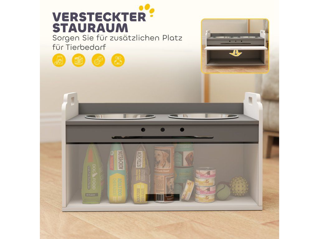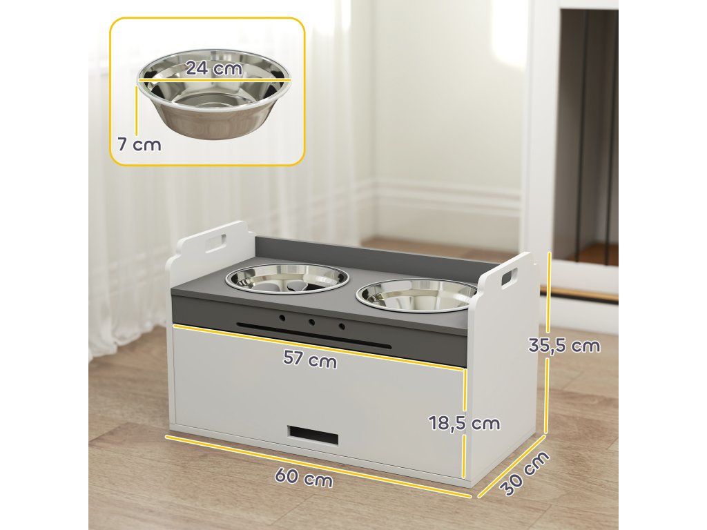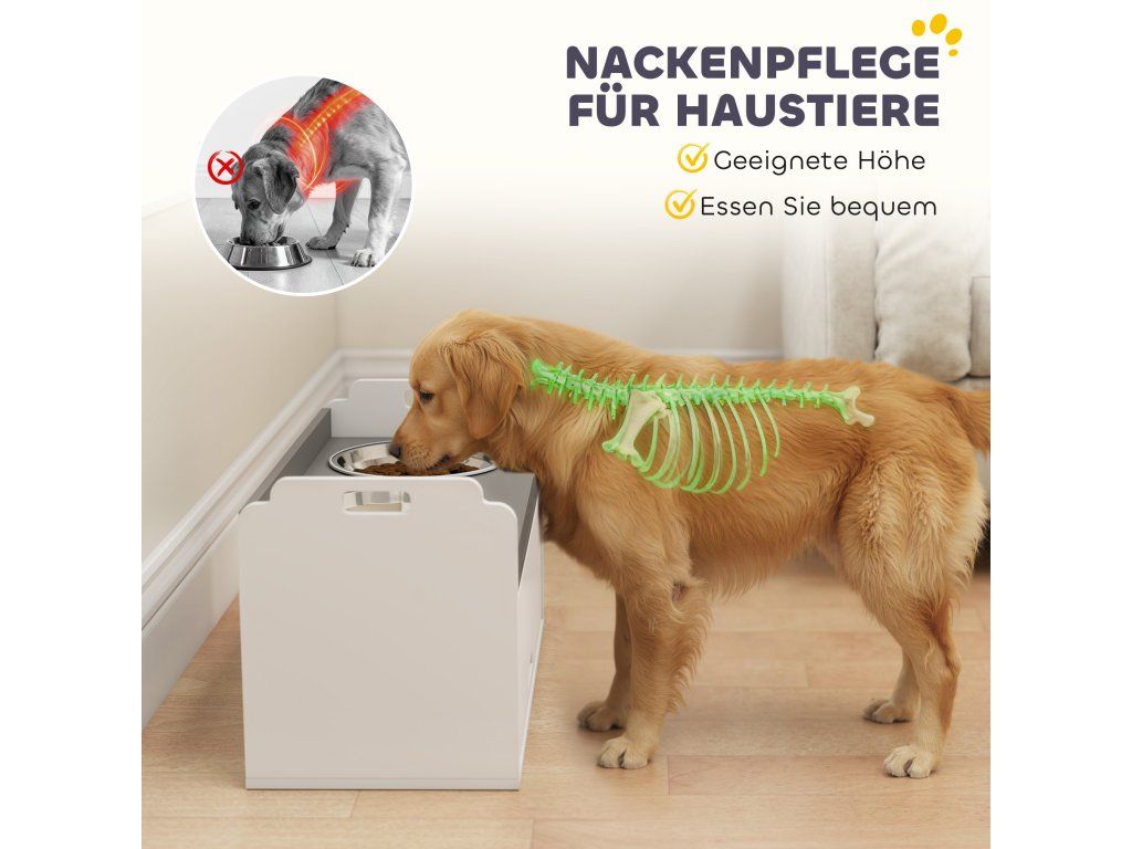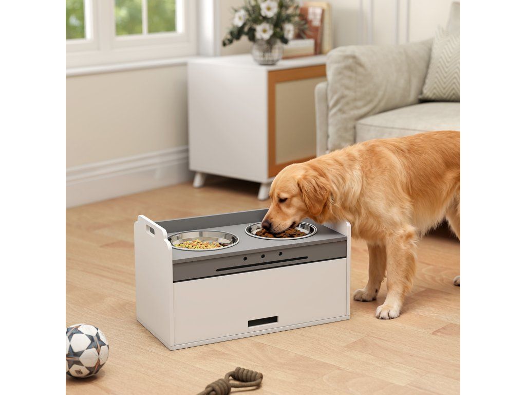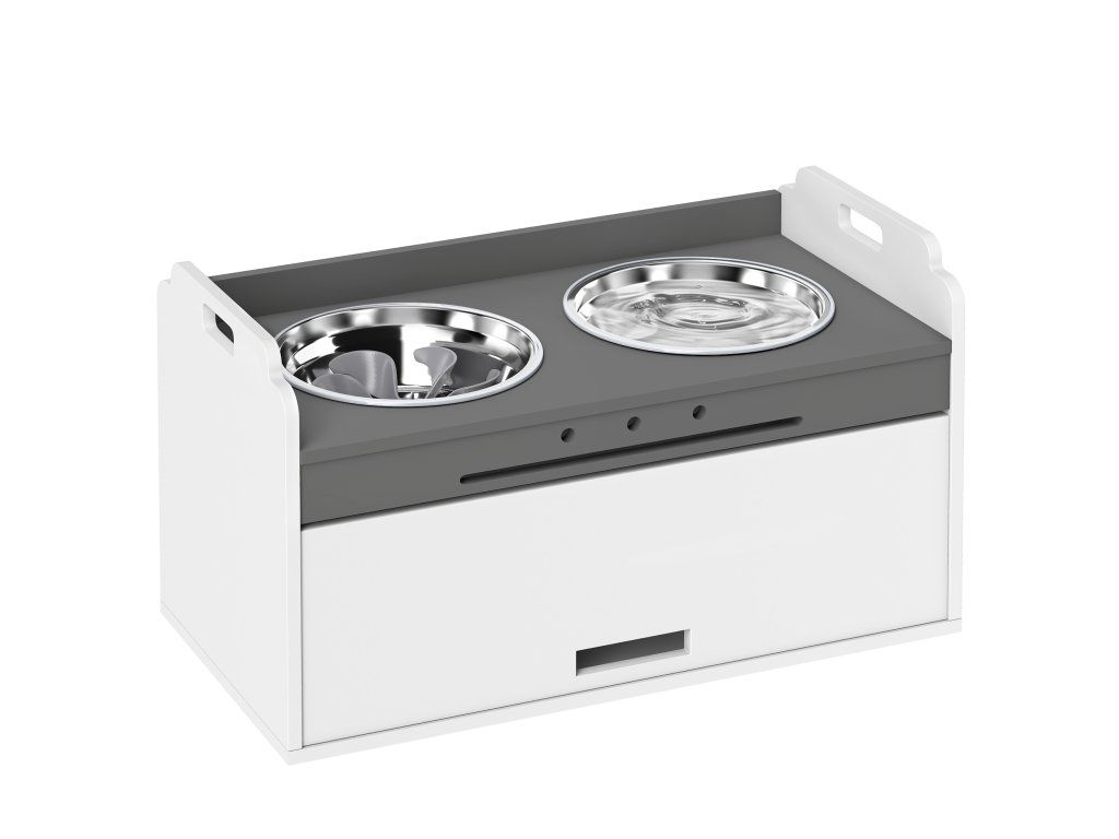 Integrovaný úložný prostor: Součástí je velkorysá skrytá skříňka o objemu 25 l, která doplňuje krmnou stanici pro psy a uchovává nezbytnosti vašeho mazlíčka uspořádané, čímž vytváří uklizený a harmonický domov.