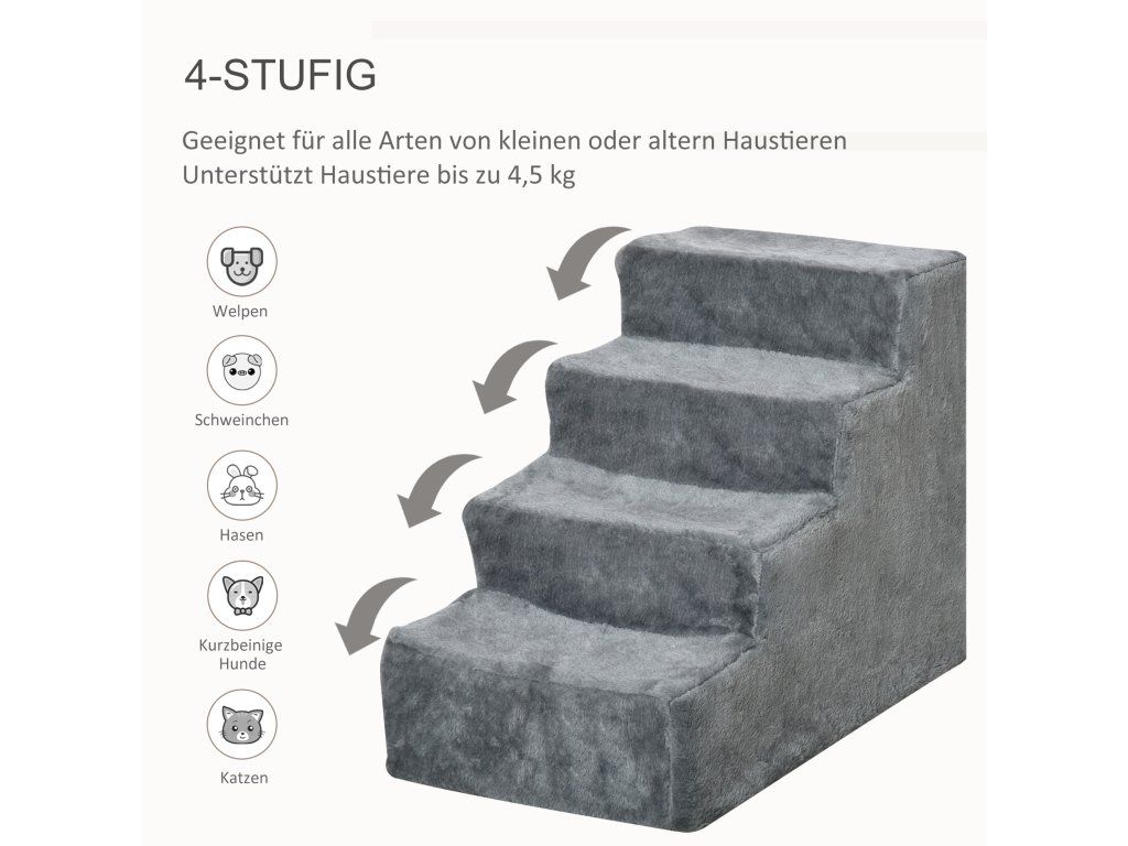 ✔ Se čtyřmi schody je robustní a stabilní, takže je vhodný pro starší domácí mazlíčky nebo osoby s omezenou pohyblivostí.