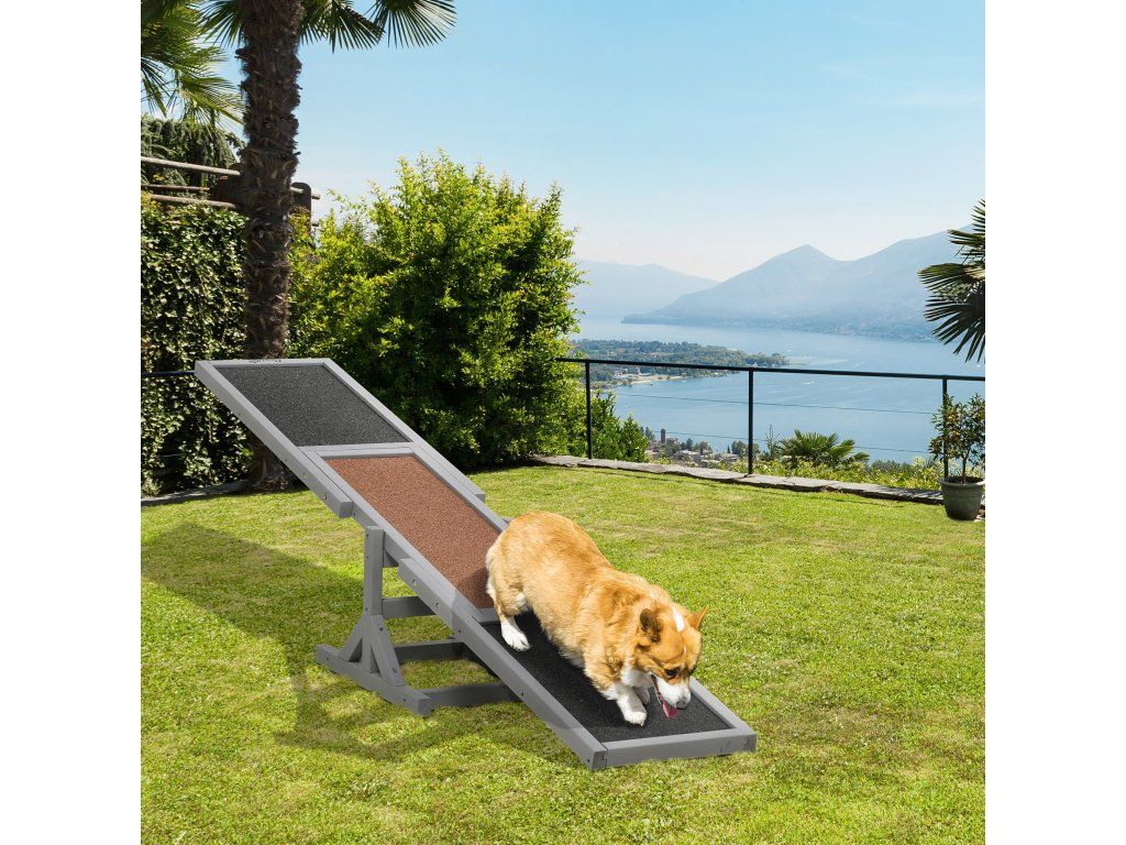 Protiskluzový povrch: Bezpečné agility vybavení pro psy. Přilnavý povrch umožňuje psům volný pohyb nahoru a dolů. Můžete si být jisti, že nespadnou.
