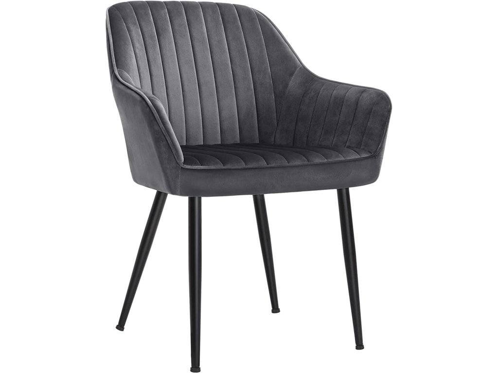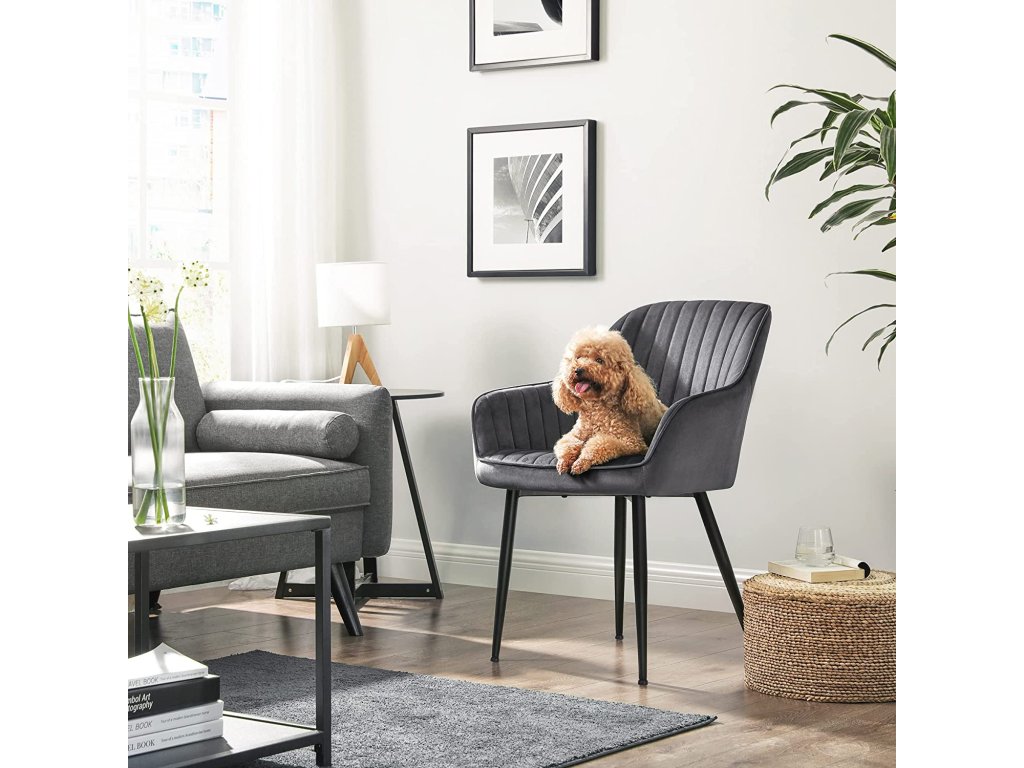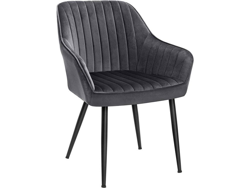 Jídelní židle, křeslo, čalouněná židle s područkami, kovové nohy, sametový potah, šířka sedáku 49 cm, max. 110 kg - do pracovny, obývacího pokoje, ložnice.