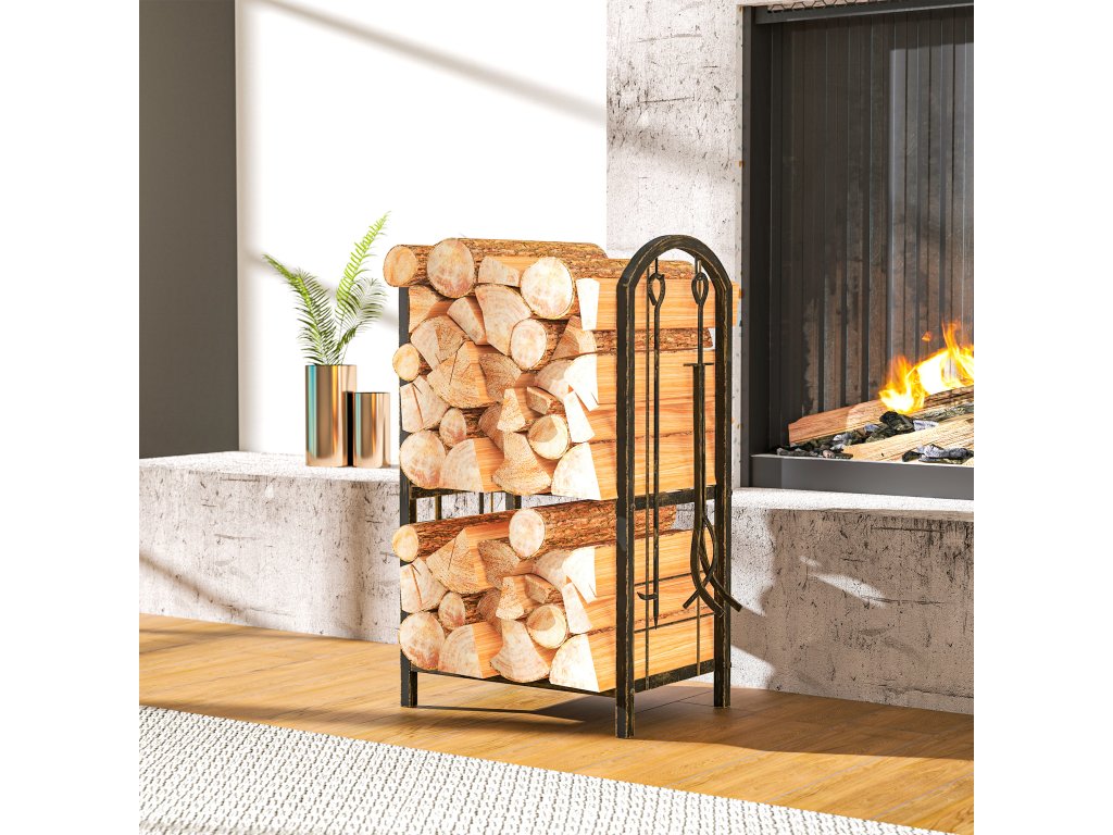 Dvoupatrový design: Tento stojan na dřevo nabízí dvě úrovně pro zdvojnásobení kapacity pro skladování palivového dřeva, což umožňuje organizované skladování. Poskytuje dostatečnou kapacitu pro celý večer u ohně, aniž byste museli přidávat další dřevo.