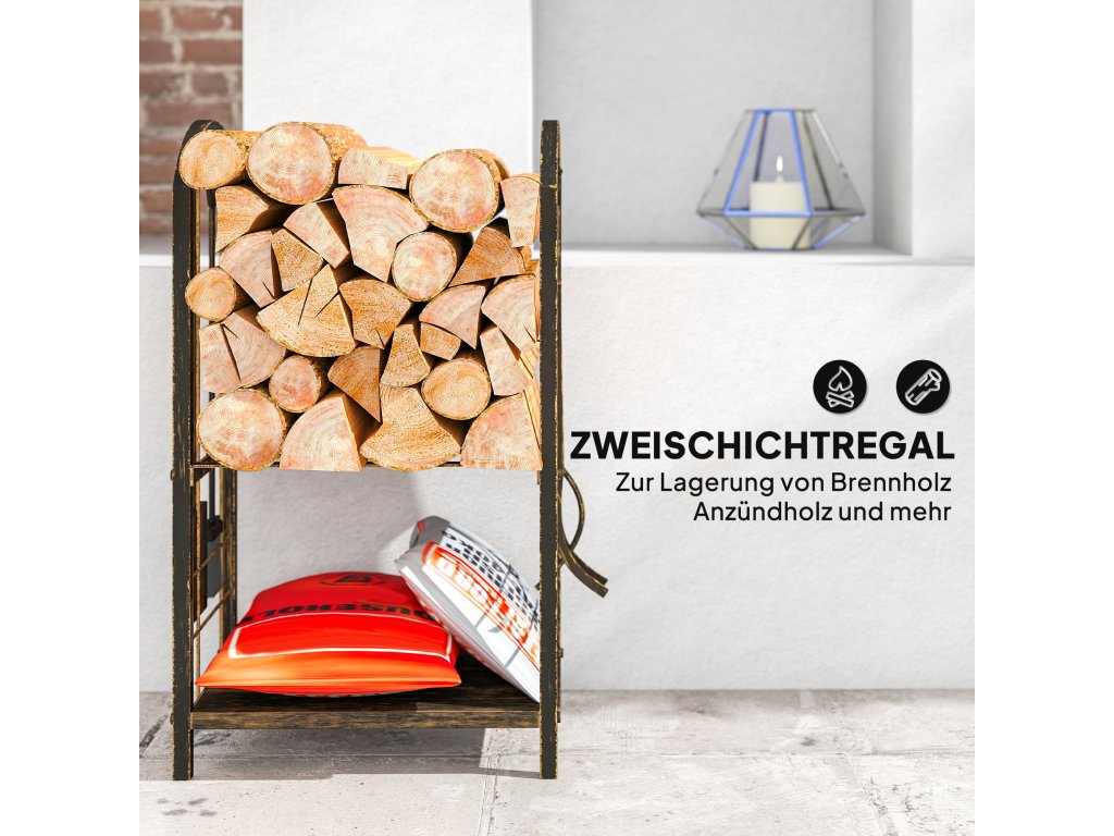 ✔ Dvoupatrový vertikální design tohoto stojanu na palivové dříví poskytuje dostatek úložného prostoru pro dřevo a zároveň šetří cennou podlahovou plochu.
