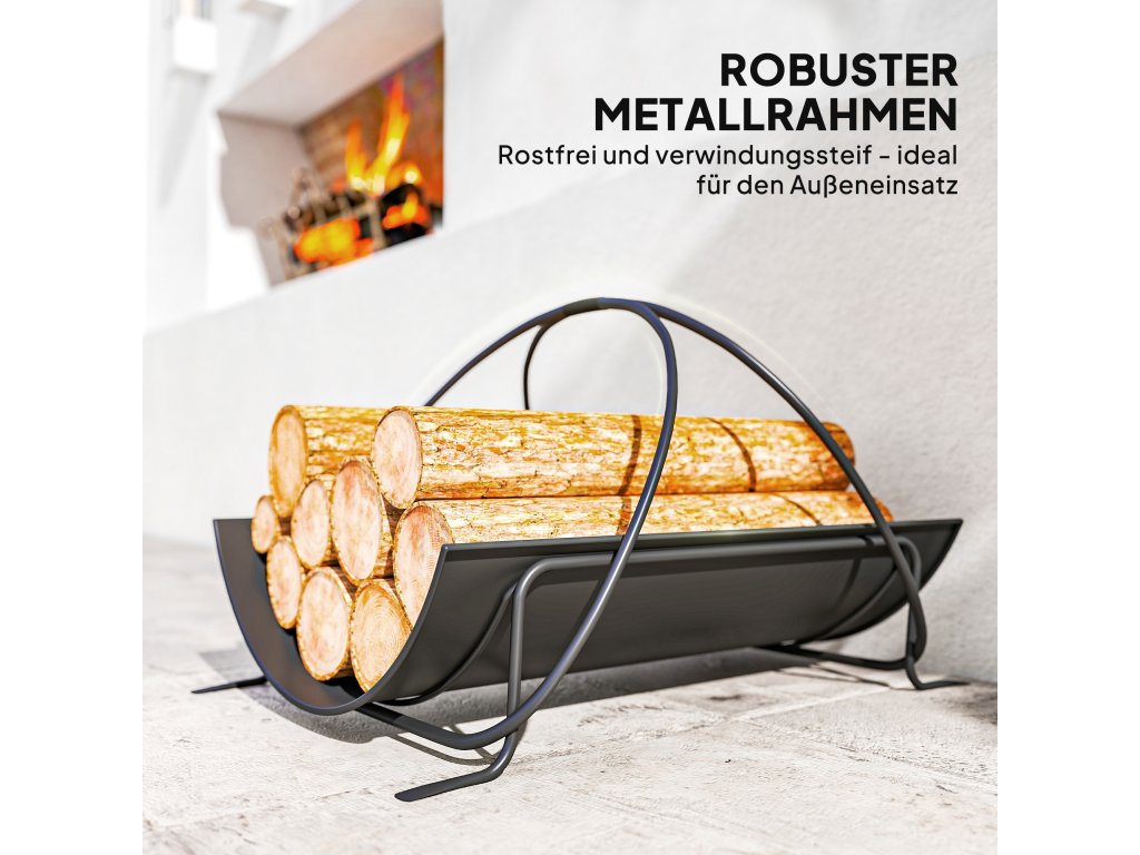 Robustní konstrukce: Tento stojan na palivové dřevo do interiéru je vyroben z vysoce kvalitního kovu s práškovým nátěrem odolným proti korozi a unese až 20 kg. Je ideální pro použití v interiéru i chráněném venkovním prostředí.