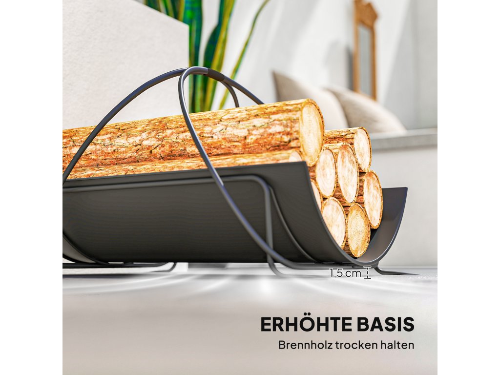 ✔ Zvýšená základna stojanu na palivové dřevo podporuje cirkulaci vzduchu, udržuje dřevo suché a prostor krbu uklizený.