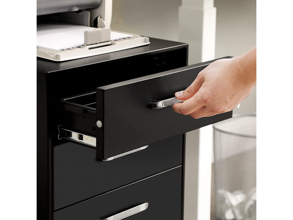Vedle stolu nebo vedle police? Rozhodnutí je zcela na vás. Tato skříň je vybavena 5 kolečky (z nichž dvě mají brzdy), takže můžete kontejner volně přesouvat a umístit jej vedle tiskárny nebo do jiné kanceláře.