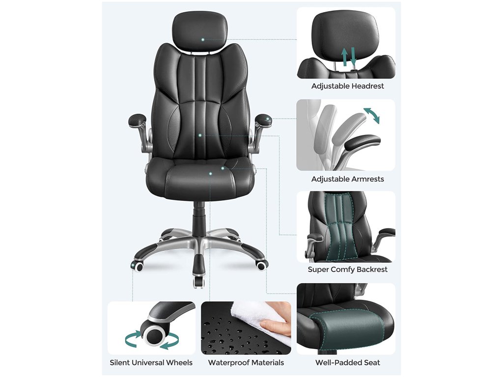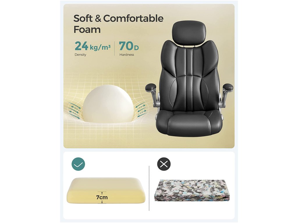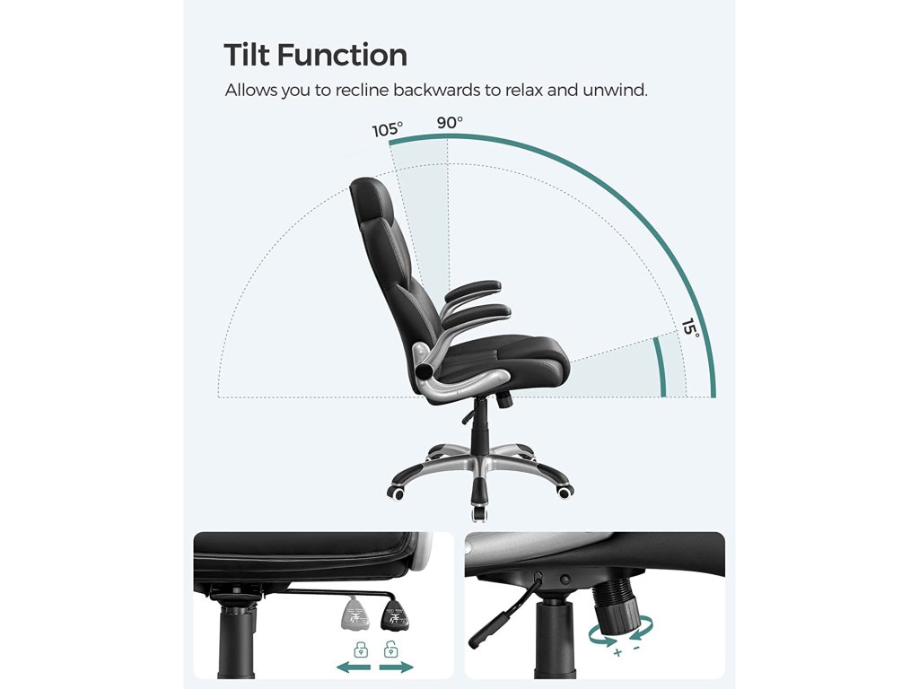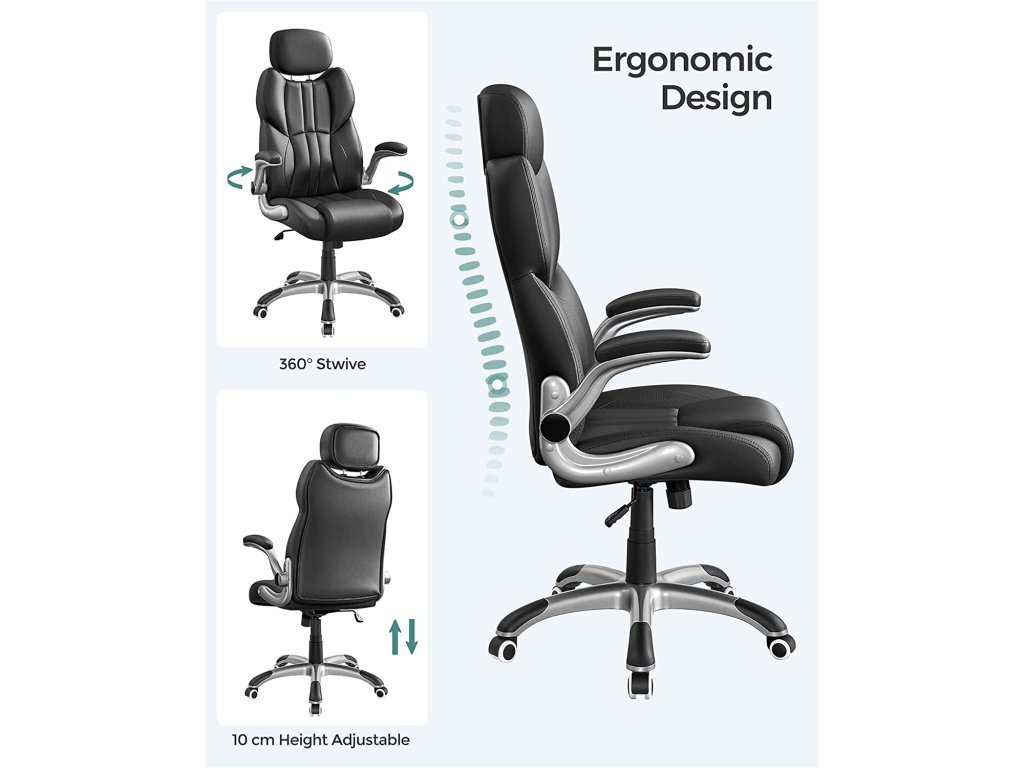 POHODLÍ PŘED VŠÍM: Při práci není nic příjemnějšího než zaujmout co nejlepší ergonomickou polohu, abyste omezili únavu a byli produktivnější. Dobře polstrované opěradlo a sedadlo jsou dokonale navrženy tak, aby vám zpříjemnily pracovní dobu.REGLABILITA PÁTEŘE: Úspora místa díky sklopným područkám s pěnovým polstrováním. Její výška je nastavitelná, stejně jako její naklápěcí mechanismus. Bonusem jsou 3 polohy nastavení opěrky hlavy, jako byste seděli na autosedačce.PROFITOVAT Z KVALITNÍHO VENTILÁTORU: Tato otočná židle je vybavena tichými nylonovými kolečky. Její nylonová základna ve tvaru hvězdy je stabilní. Toto báječné sedadlo má bezpečnou plynovou pružinu, testovanou institutem TÜV Rheinland podle normy DIN4550, a jeho neuvěřitelný potah z umělé kůže vás na první pohled okouzlí, nebudete tomu věřit! Navíc se velmi snadno čistí.INSTALACE VE 2 ČASECH 3 POHYBY: Rychlá a snadná montáž za 15-30 minut. Imbusový klíč je součástí dodávky100% ZÁRUKA SPOKOJENOSTI: SONGMICS poskytuje zákaznický servis na míru, který je k dispozici před nákupem i po něm. Nečekejte déle a užívejte si hned!| Kategorie: | Kancelářské židle |