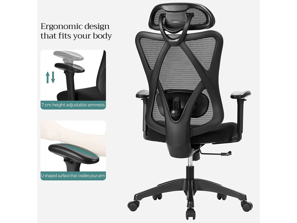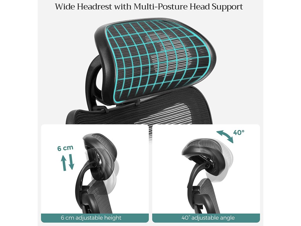 Různé úhly náklonu: chcete soustředěně pracovat, trochu si odpočinout nebo si zdřímnout? Nastavte si úhel sklonu opěradla na 95°, 115° nebo 130°, takže je možné vše.ERGONOMICKÝ POLŠTÁŘ: Tato kancelářská židle je vybavena vysoce elastickým polštářem ve tvaru písmene U, který poskytuje pohodlné usazení pro stehna a boky. Prodyšná síťovaná opěrka zad a opěrka hlavy navíc usnadňují dlouhé sezení.Nepotřebujete bederní polštář: tato počítačová židle má totiž polstrovanou bederní opěrku, která je nejen výškově nastavitelná o 6 cm, ale lze ji nastavit i o 2 cm dopředu a dozadu. aby se vašim zádům uleviloCo dalšího lze nastavit? Výška sedadla, područky a úhel široké opěrky hlavy. Nastavte si židli podle potřeby, abyste našli pohodlnou polohu při sezení.