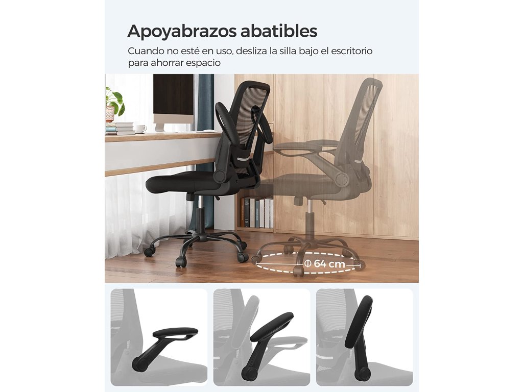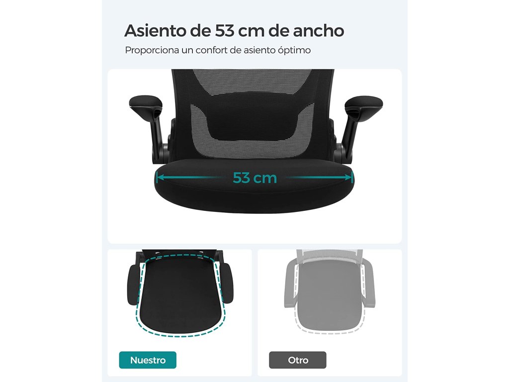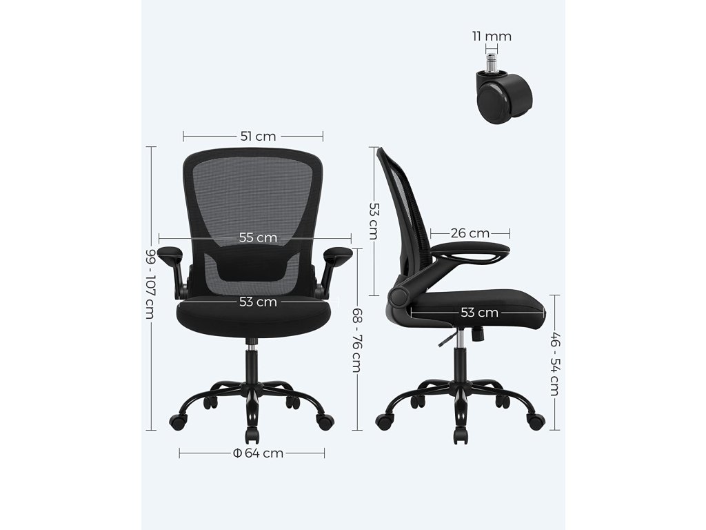 Kancelářská židle, síťovaná otočná židle, ergonomická počítačová židle, bederní opěrka, oscilační, sedák 53 cm, sklopné područky, černá.