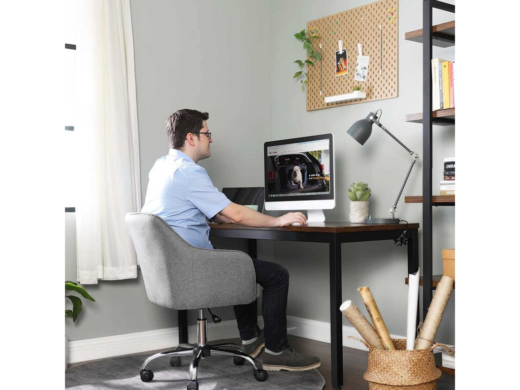 Kancelářská židle, pohodlná kancelářská židle, výškově nastavitelná počítačová židle, nosnost až 120 kg, ocelový rám, imitace lnu, prodyšná, domácí kancelář, kancelář, šedá.