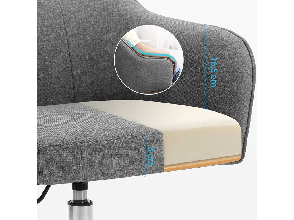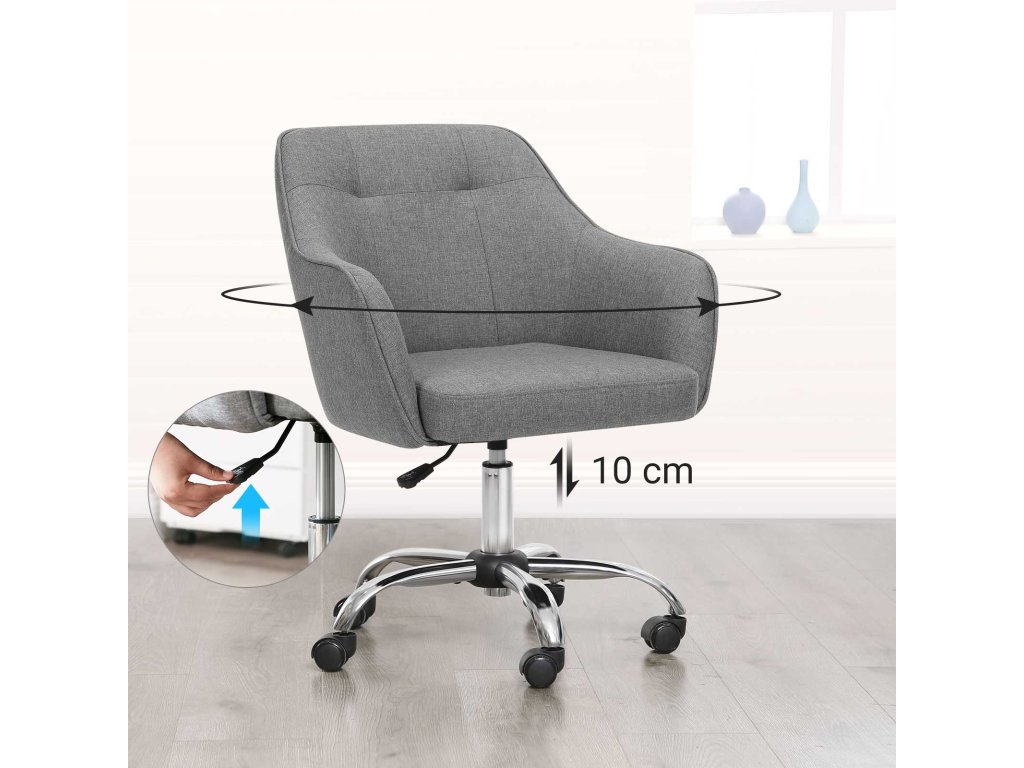 Co je na židli nejdůležitější? Samozřejmě pohodlí! Opěradlo a sedák této kancelářské židle jsou proto dobře polstrované a měkký potah z prodyšné imitace lnu poskytuje další pohodlí. Můžete si také nastavit výšku sedadla a ulevit svým pažím a ramenům na praktických područkách.